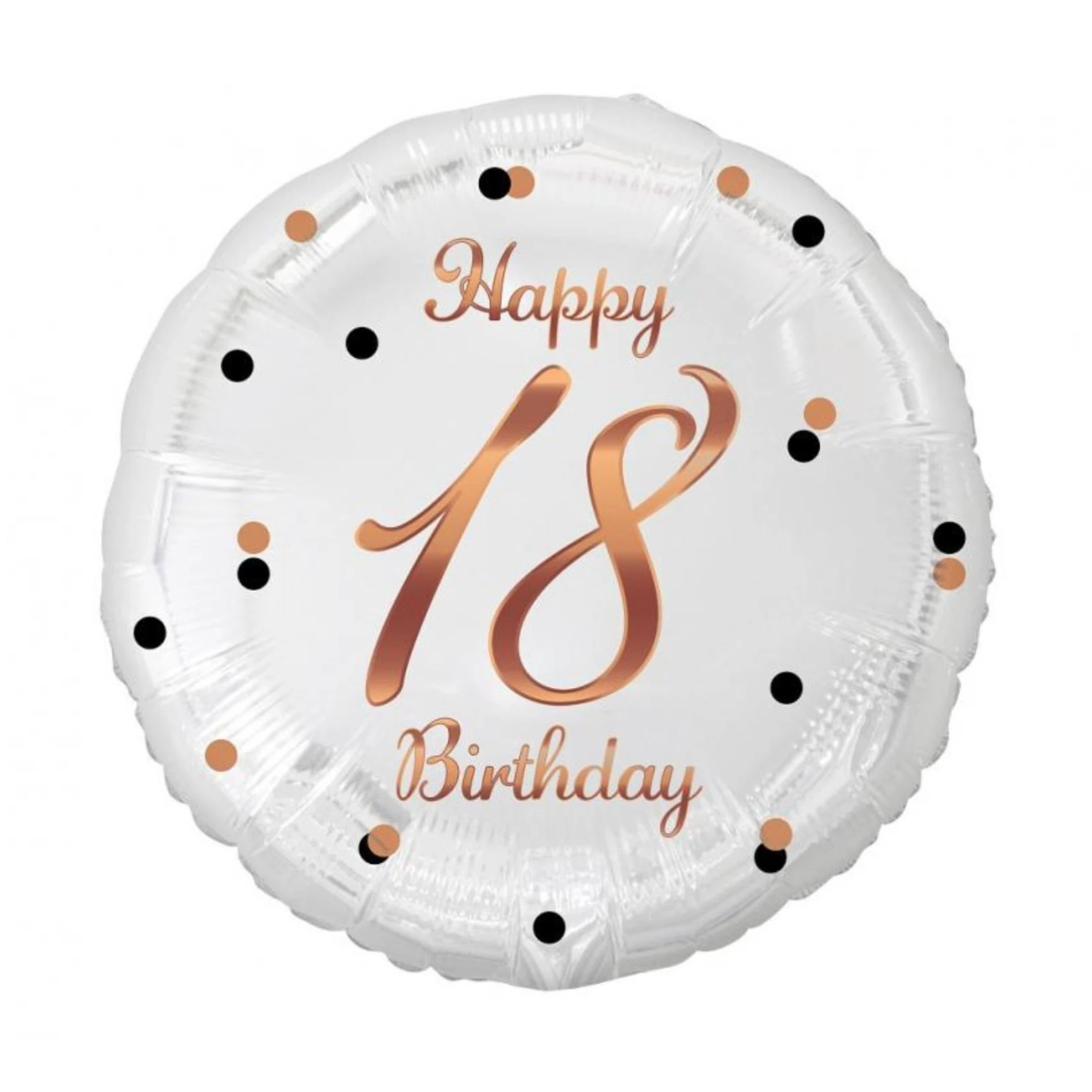 Balón foliový bílý 18 let - Happy Birthday - narozeniny - růžovozlatý nápis - 45 cm