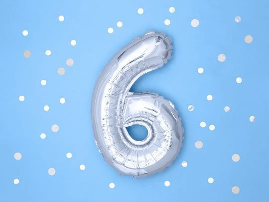 Balón foliový číslice STŘÍBRNÁ 35 cm - 6 ( NELZE PLNIT HELIEM )