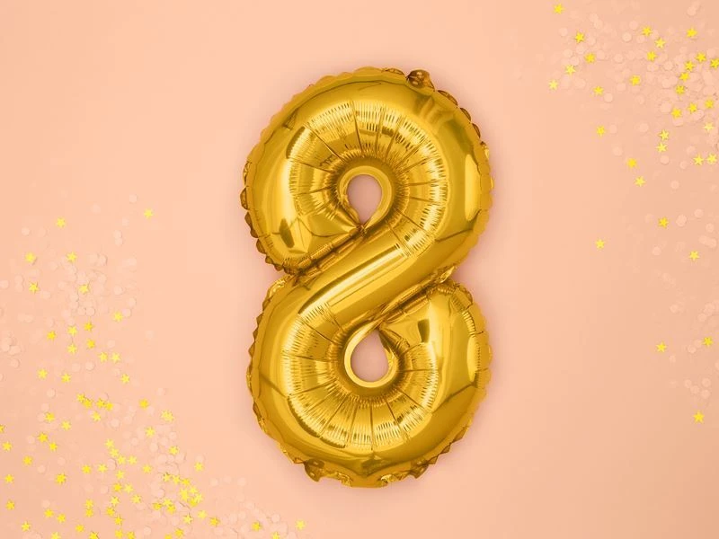 Foliový balónek číslice 8 ve zlaté barvě , udělej svou oslavu opravdu zářivou!
