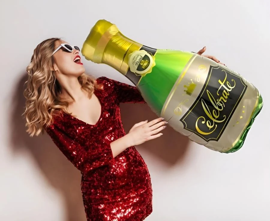 Balón foliový láhev šampaňské - Champagne - Silvestr/HAPPY NEW YEAR - 72 cm