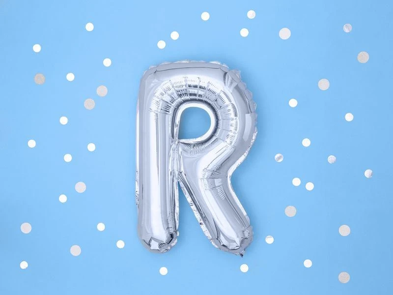 Balón foliový písmeno "R", 35cm, STŘÍBRNÝ (NELZE PLNIT HELIEM)