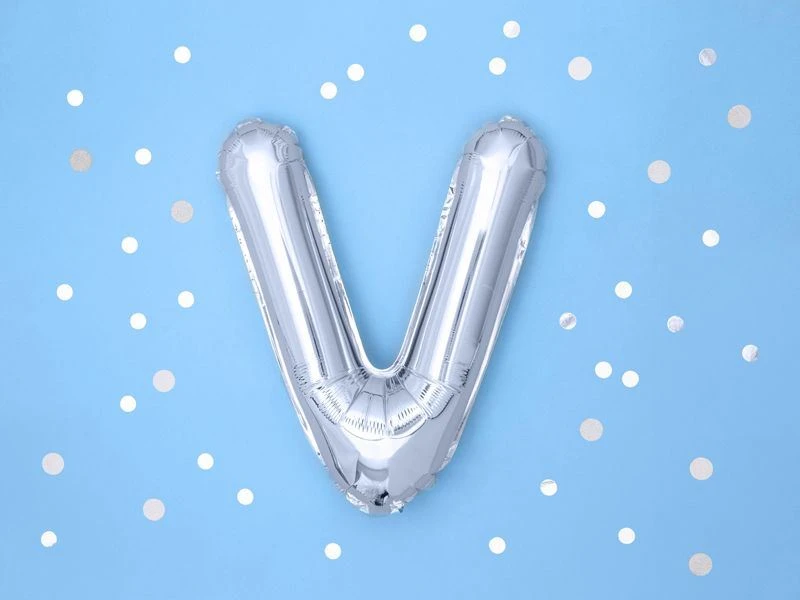 Balón foliový písmeno "V", 35cm, STŘÍBRNÝ (NELZE PLNIT HELIEM)