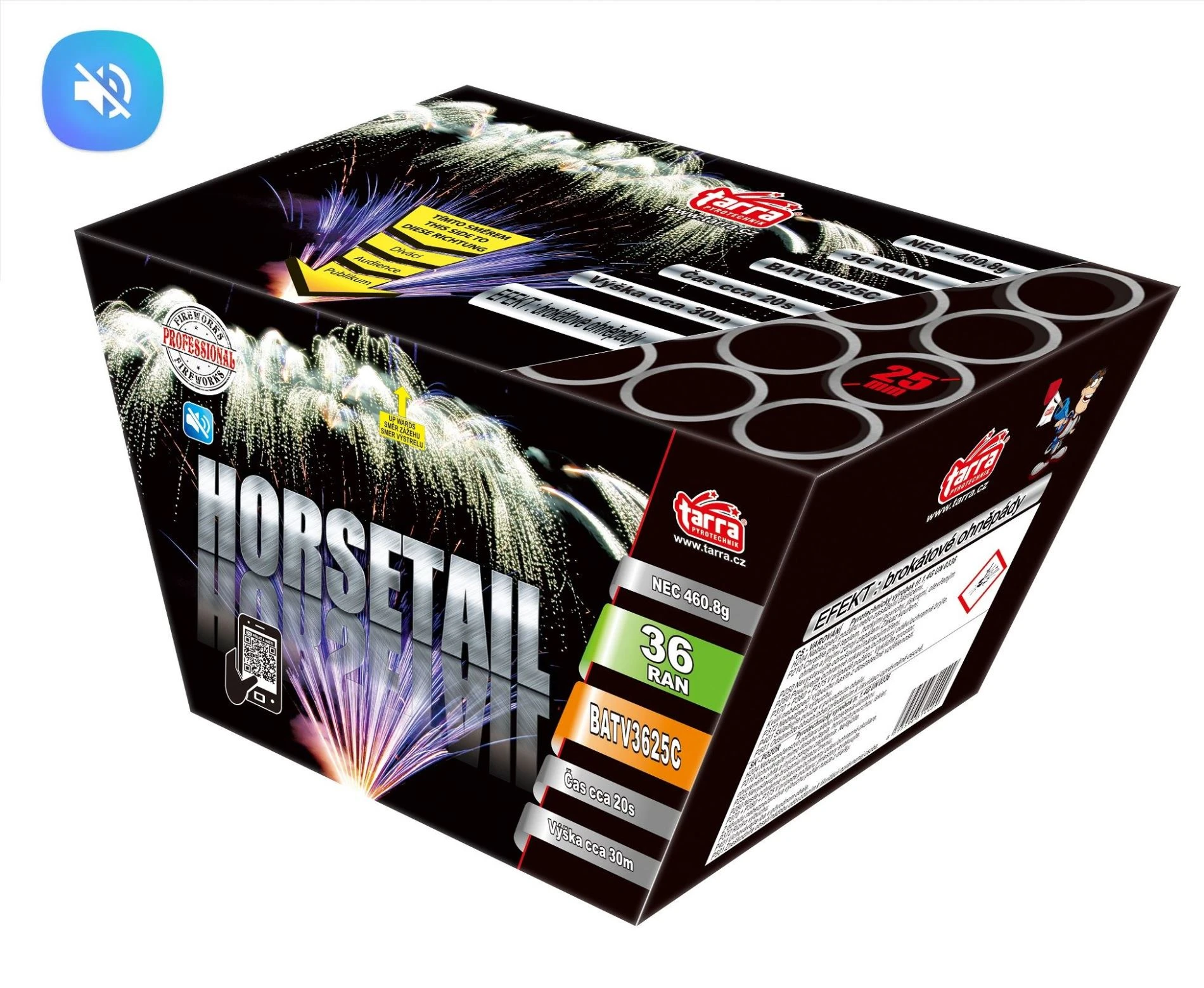 BATERIE VÝMETNIC HORSETAIL 36 RAN,TICHÝ OHŇOSTROJ, ráže 25 mm