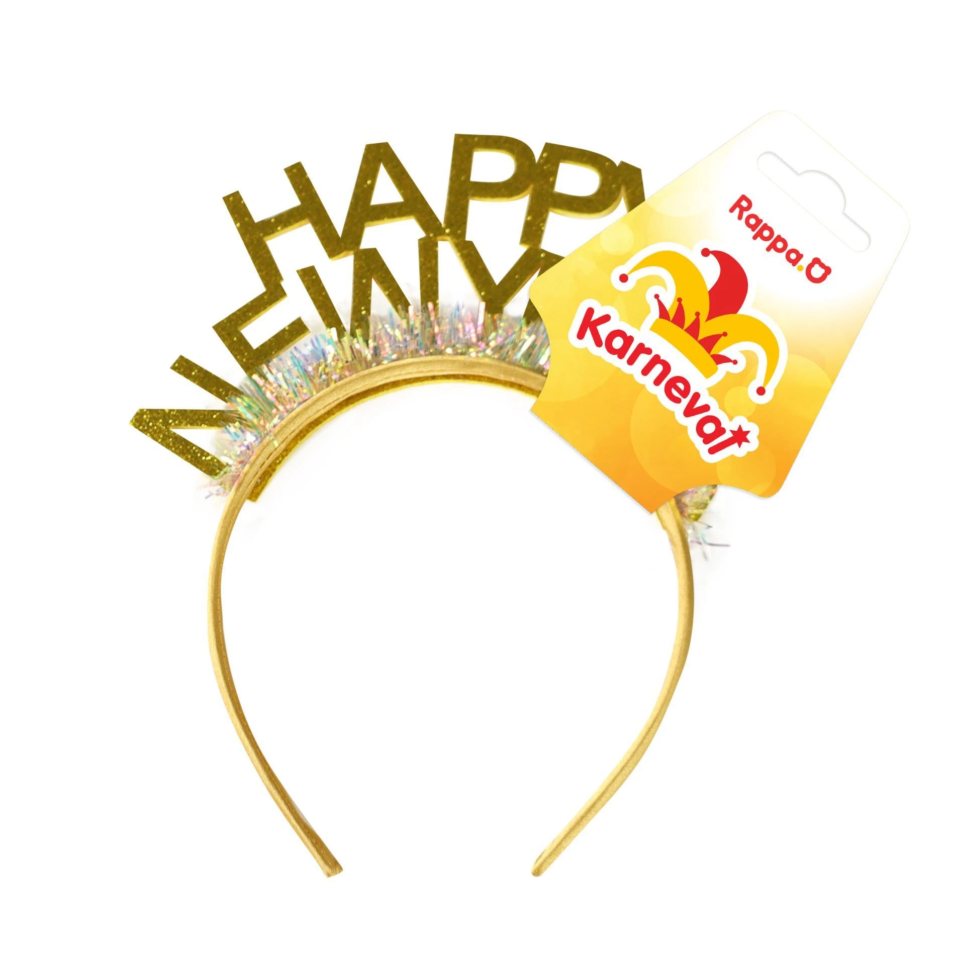 Oslnivá zlatá čelenka s třpytivým nápisem HAPPY NEW YEAR je senzačním doplňkem na oslavu nebo večírek při vítání Nového roku!