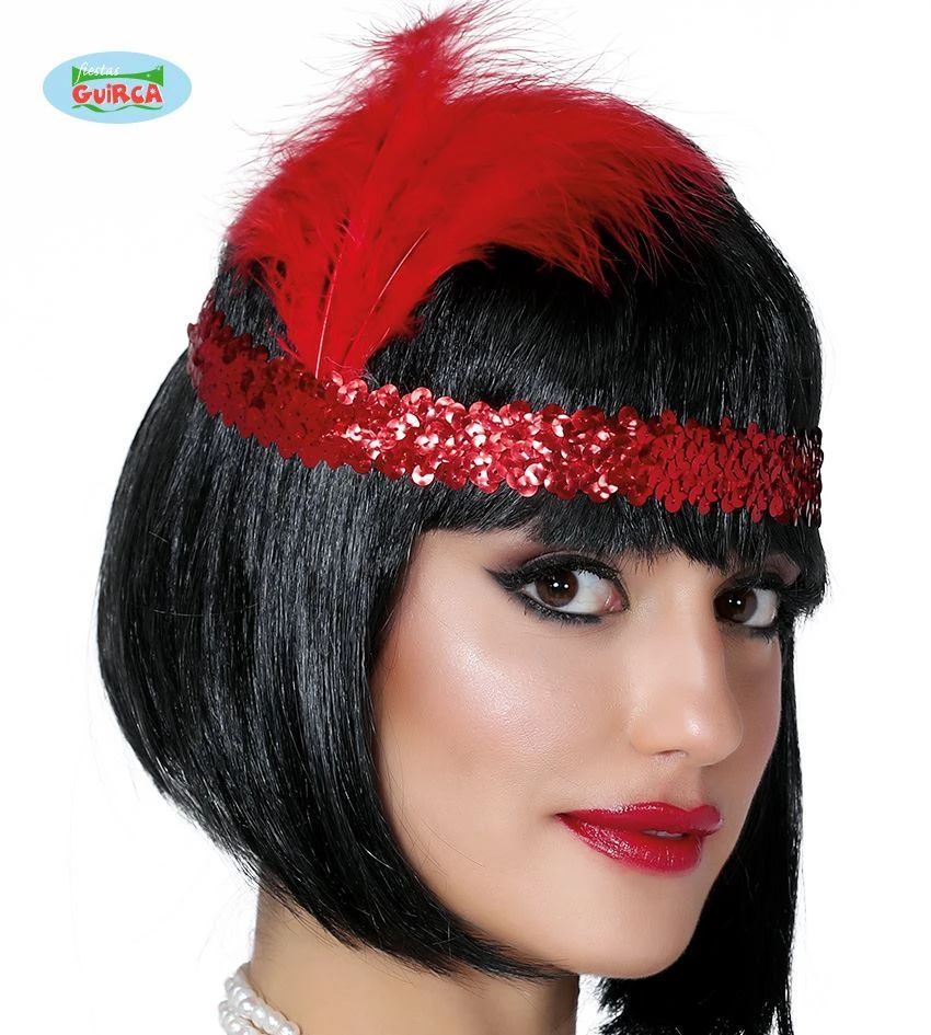 Krásná červená čelenka s flitry vhodná na prohibice párty a večírky ve stylu 30. let. Pojmy spojené s tímto produktem: Čelenka Charleston, doplněk, prohibice, 20. léta, karneval, ples, Velký Gatsby, charleston, jazz