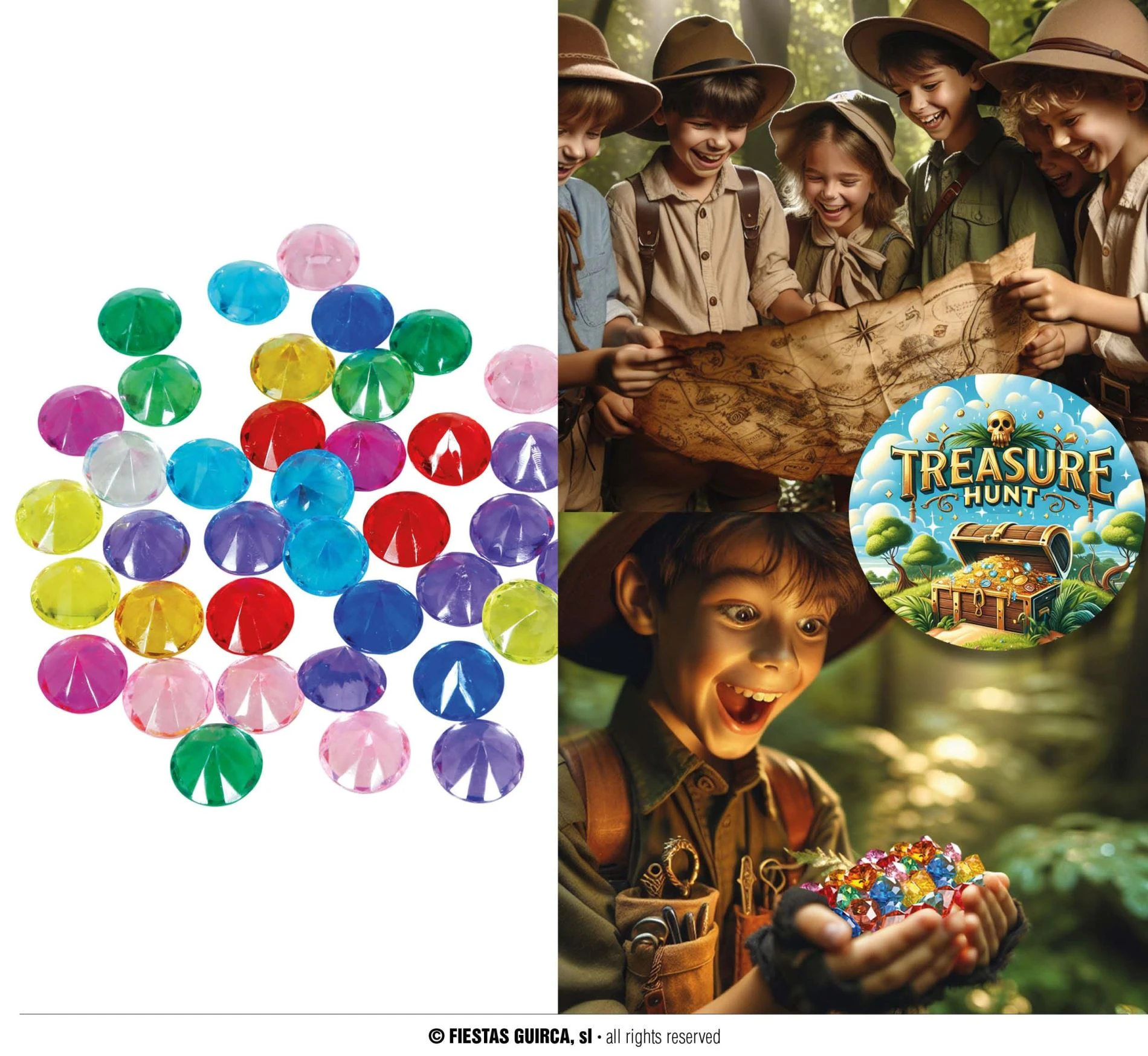Dekorace barevné drahokamy - poklad - pirát - 50 ks