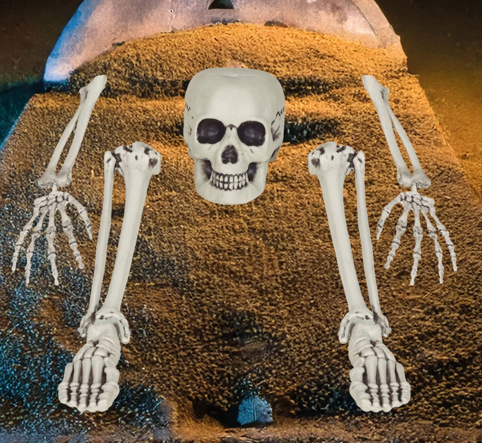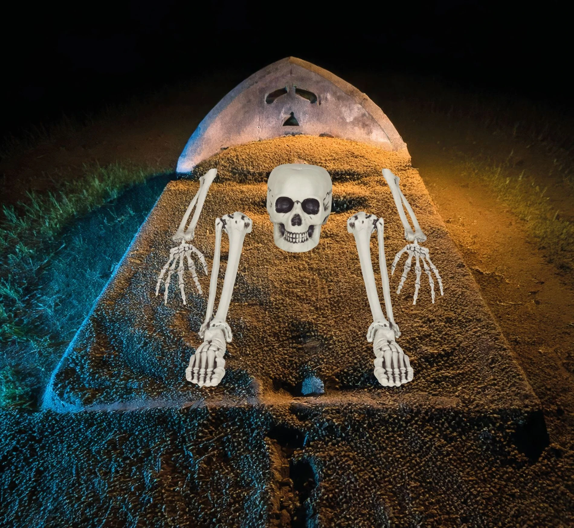 Kostru můžete částečně zakopat do země a vytvořit tak iluzi vylézajícího kostlivce.