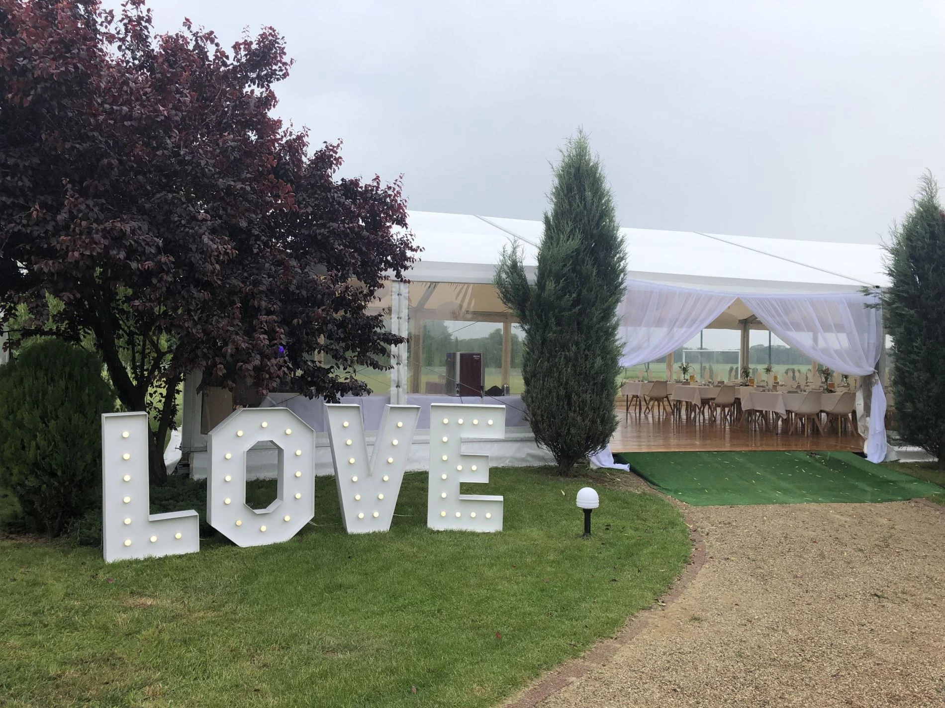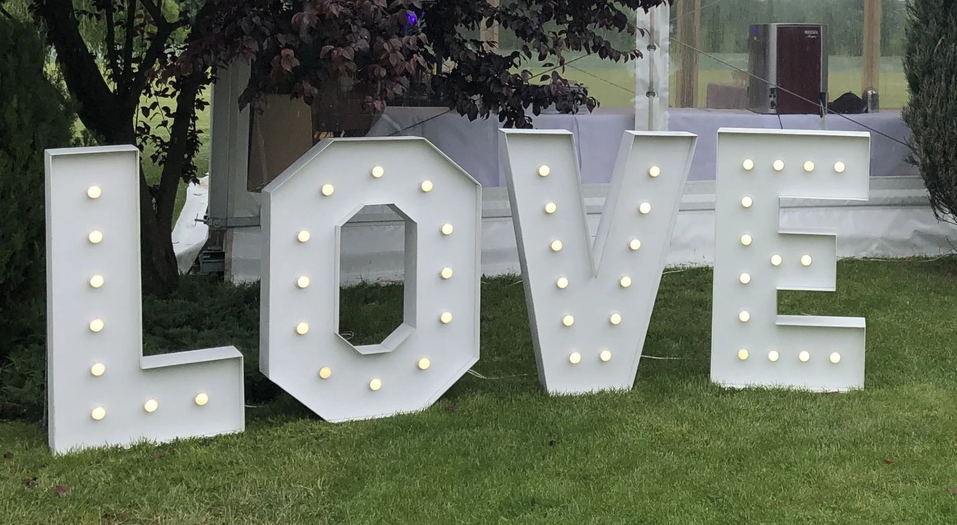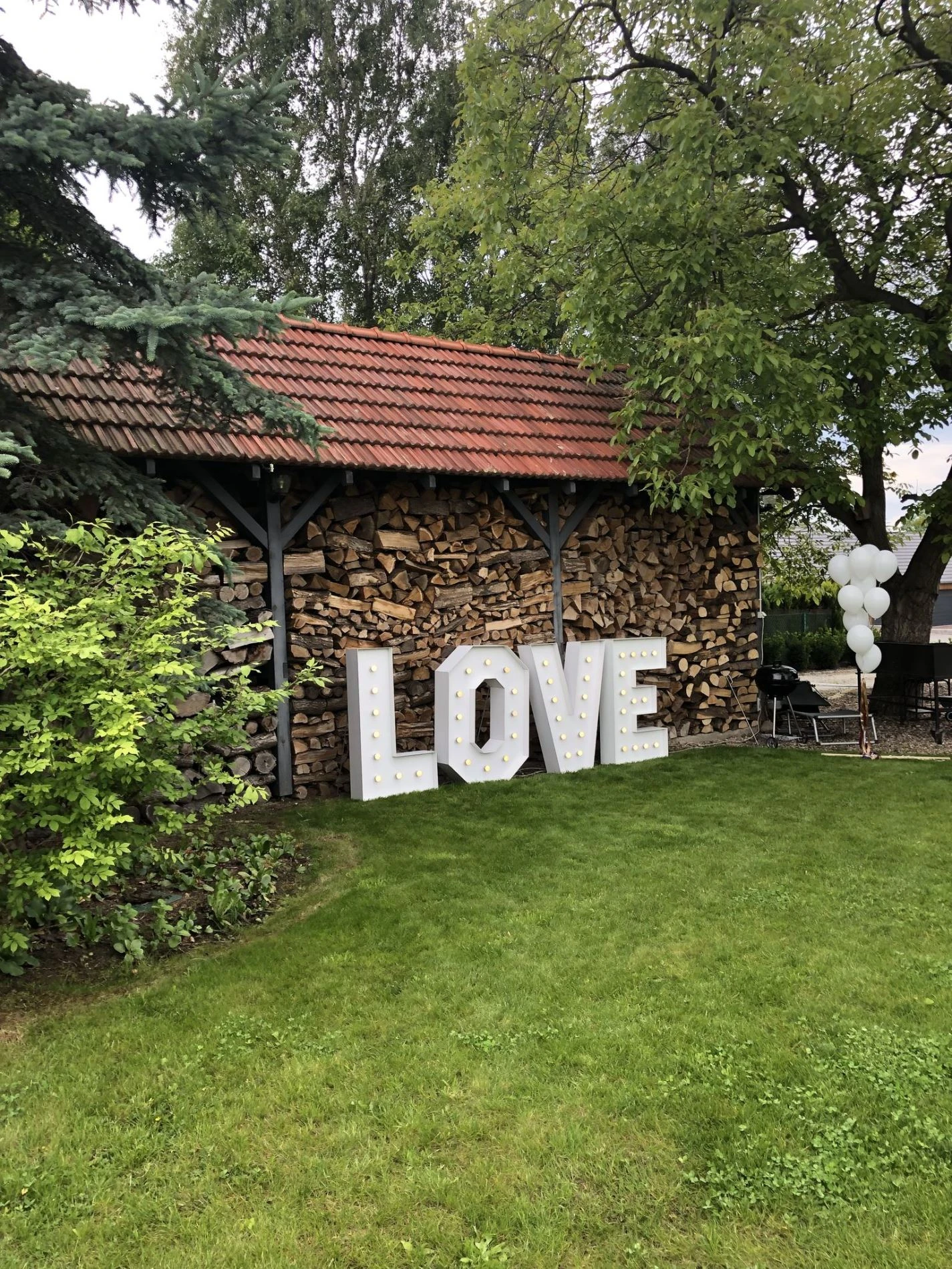 - originální svíticí dekorace L O V E o výšce 1,2 metry a šířce cca 3 metry