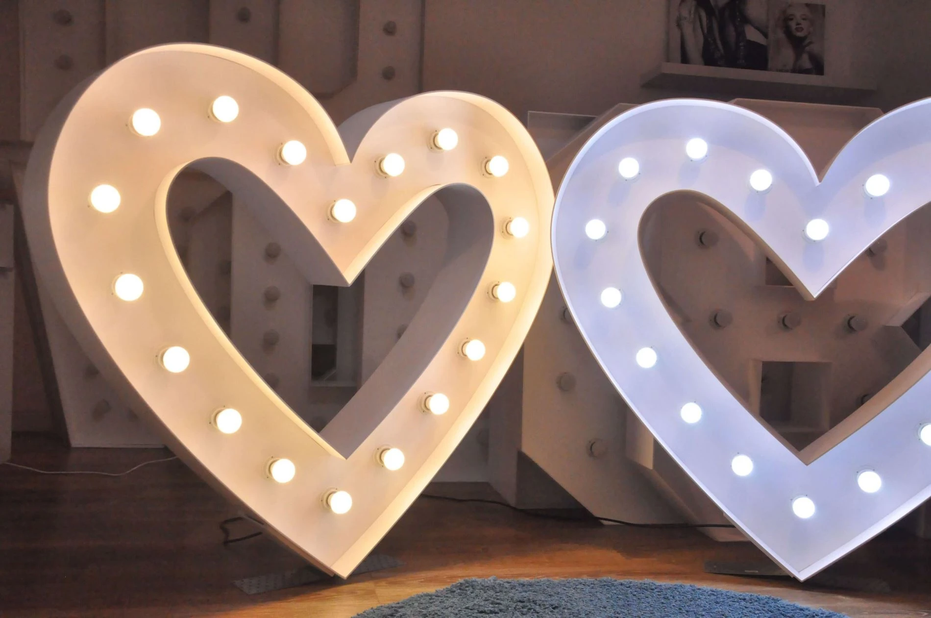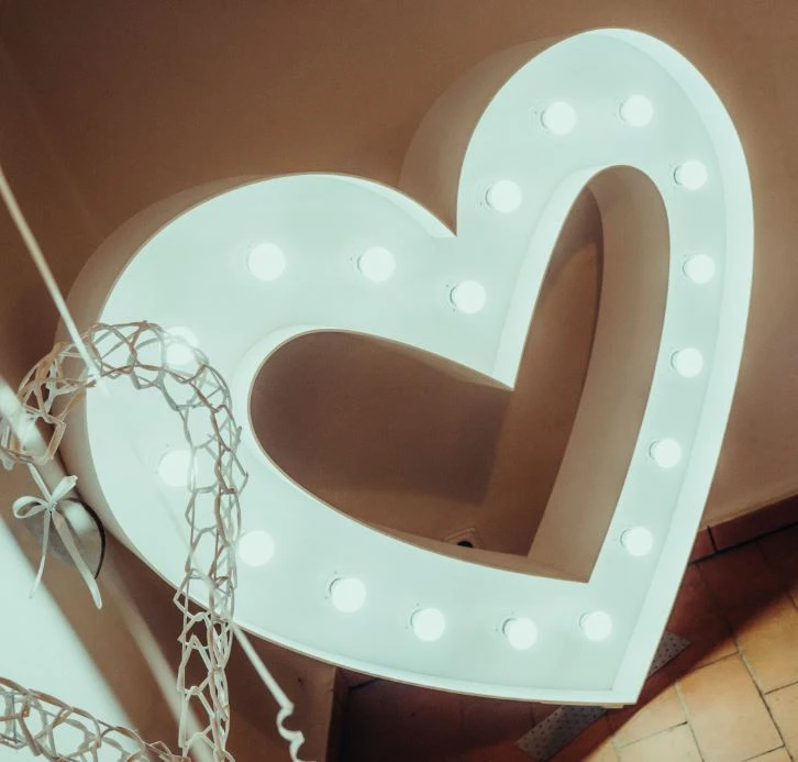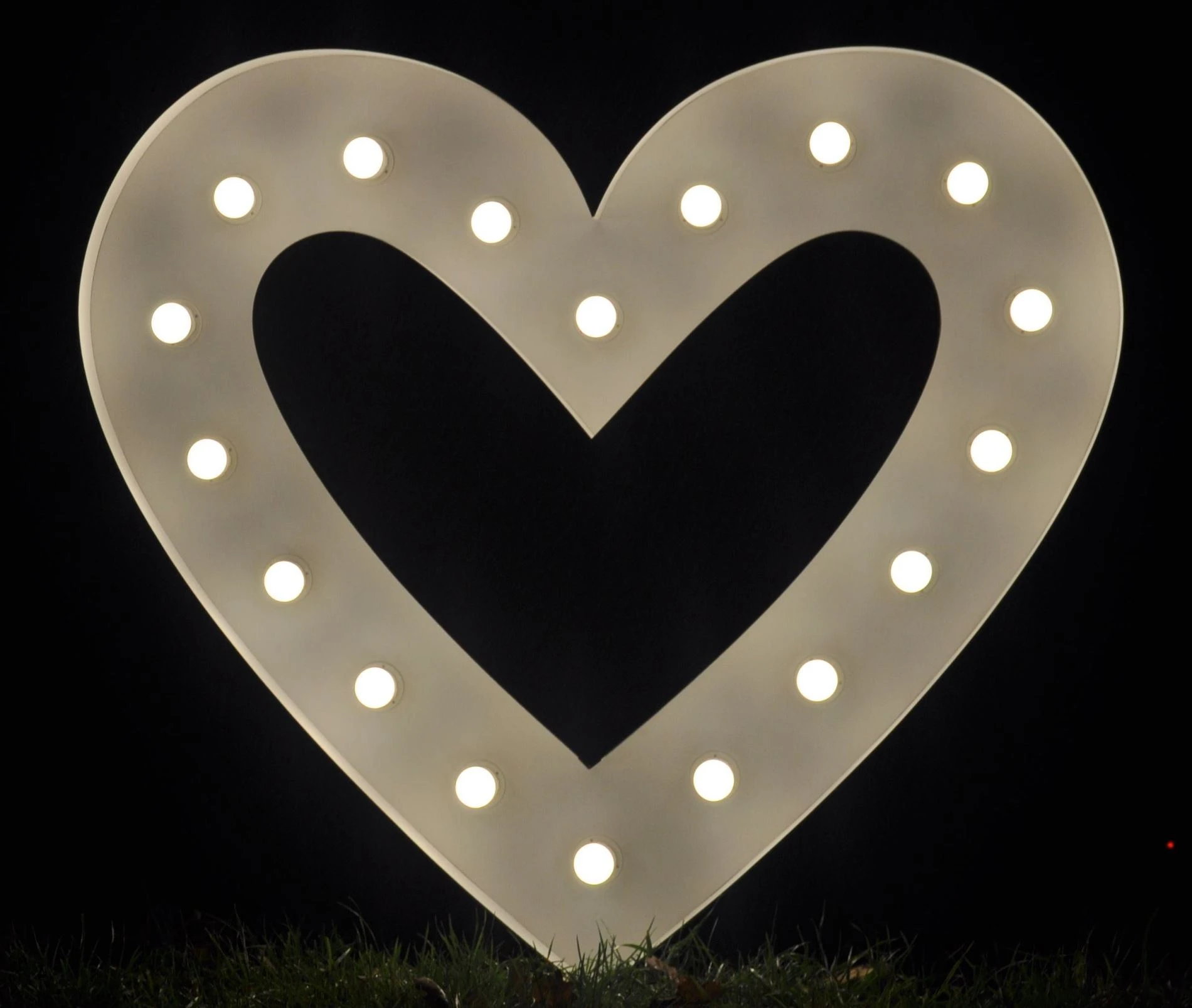 - nápis SRDCE - LOVE tvoří 1 samotné písmeno v bílé barvě s el.napájením
