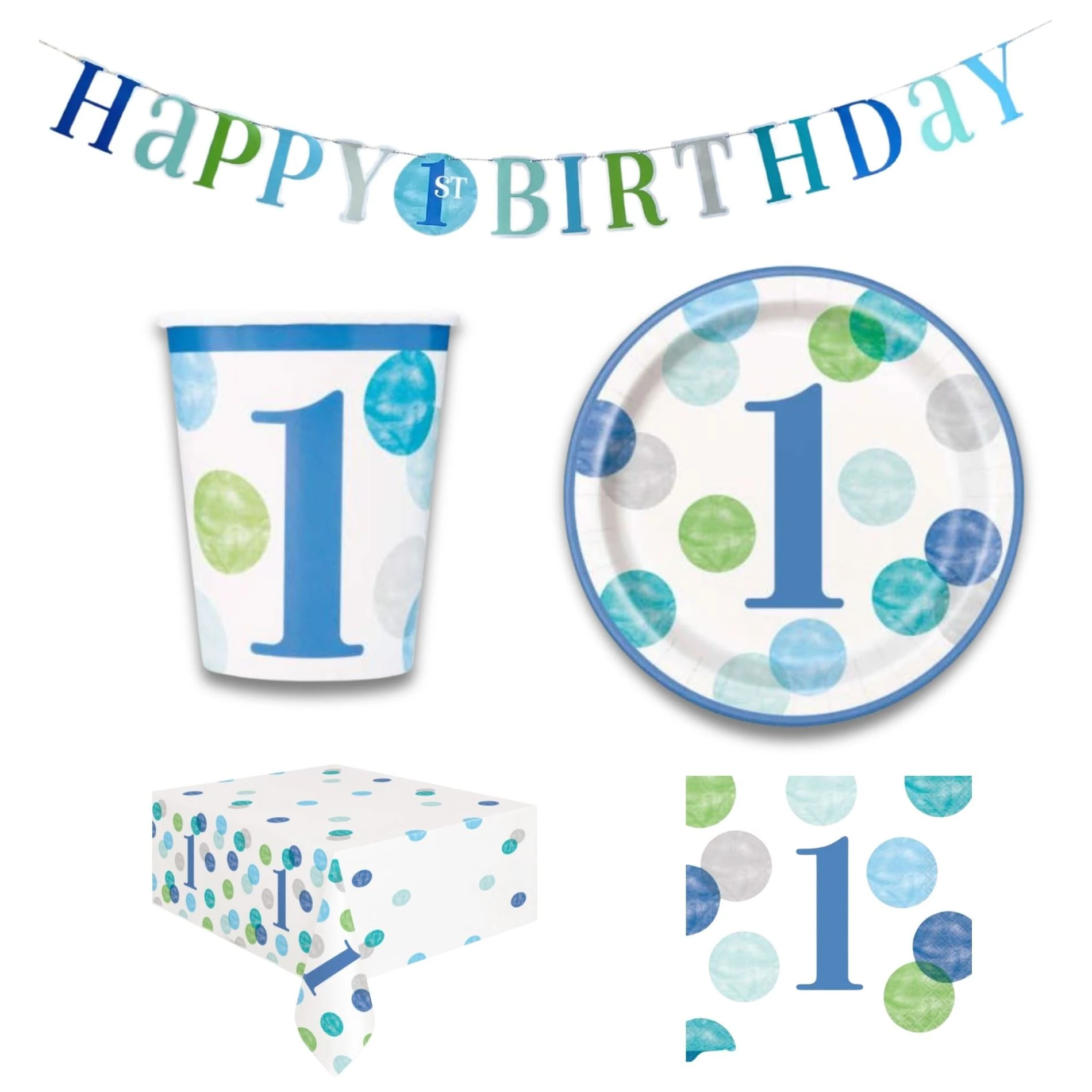 Zvýhodněná dětská Mega narozeninová sada 1. narozeniny - kluk - pro 16 osob