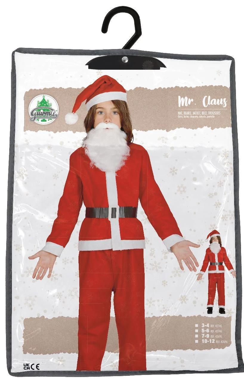 Obsahuje: kalhoty, kabátek, čepici, vousy a pásek.