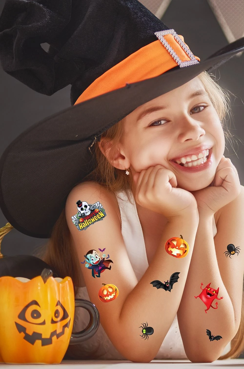 Dočasné dětské tetování Happy Halloween je jednoduchý, ale velmi oblíbený doplněk, který dodá halloweenské oslavě hravost, smích a nezapomenutelné momenty. Přesně takové drobnosti dělají z dětské party skutečný zážitek.