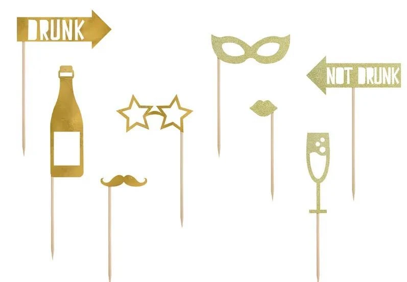 Zkombinujte zlaté foto doplňky s černými a zlatými balónky, metalickými klobouky, frkačkami a konfety. Fotokoutek pak bude nejen funkční, ale i vizuálně výrazný – přesně tak, jak si poslední noc v roce zaslouží.