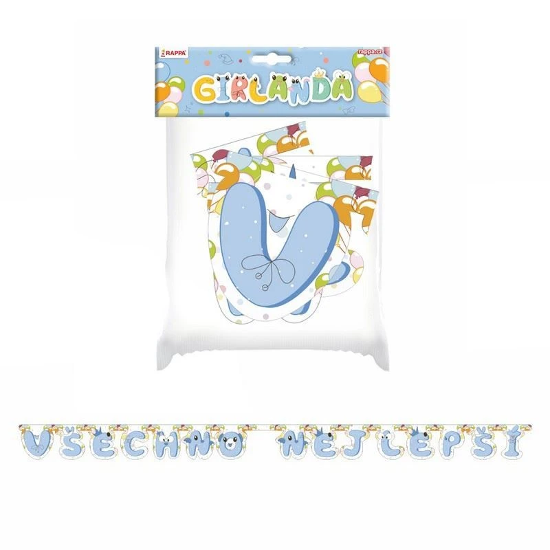 Girlanda narozeniny - VŠECHNO NEJLEPŠÍ modrá - 215 cm