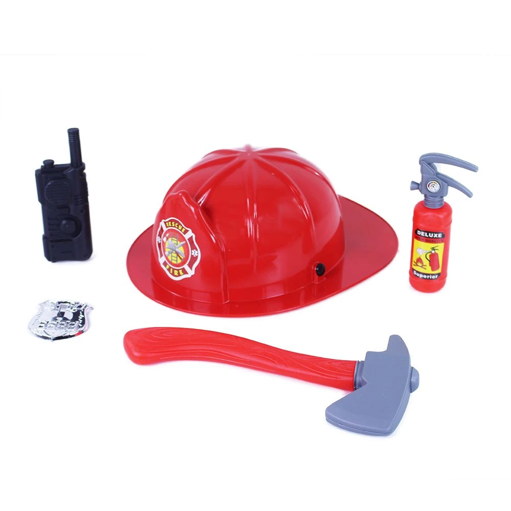Sada obsahuje: helmu, hasičskou sekeru, hasicí přístroj, vysílačku a odznak.