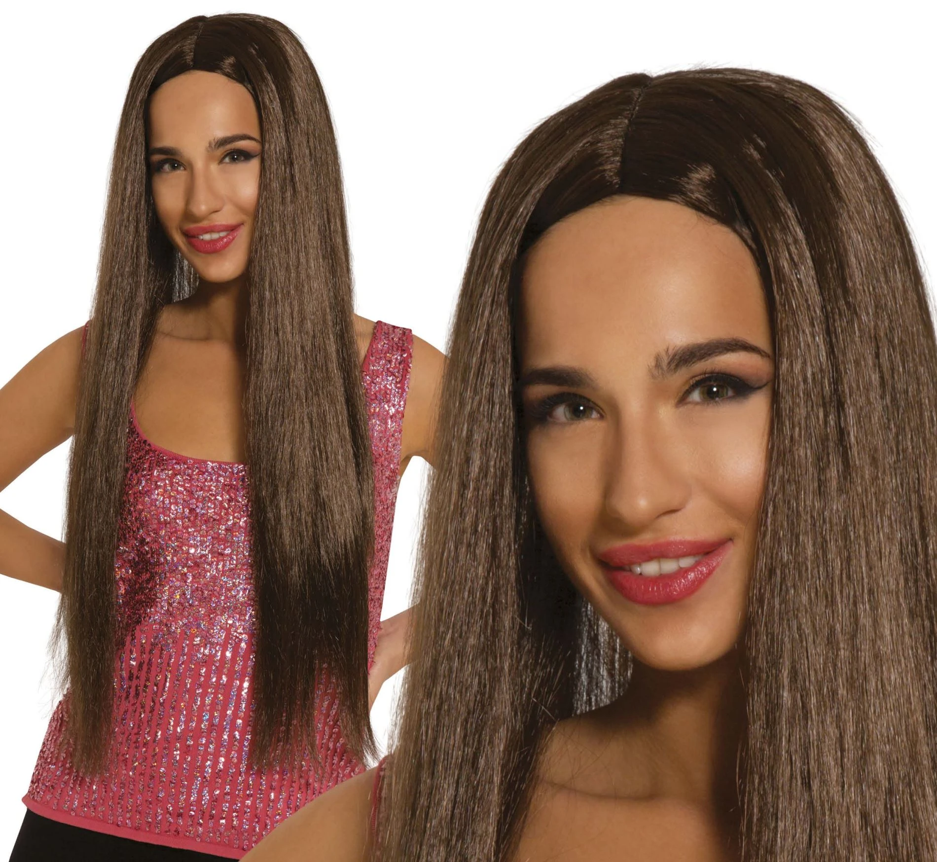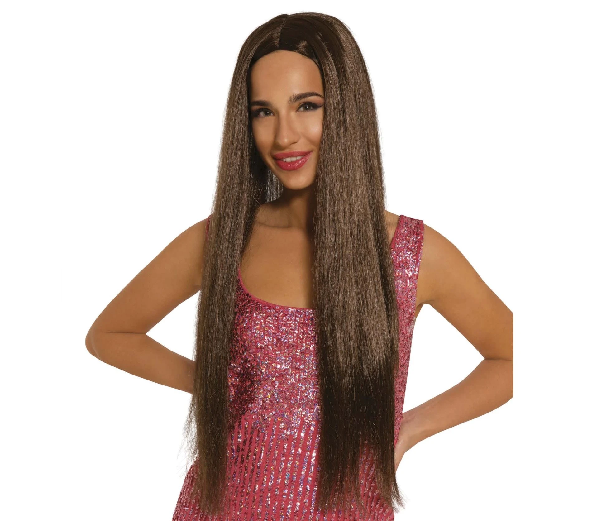 Hnědá dlouhá paruka