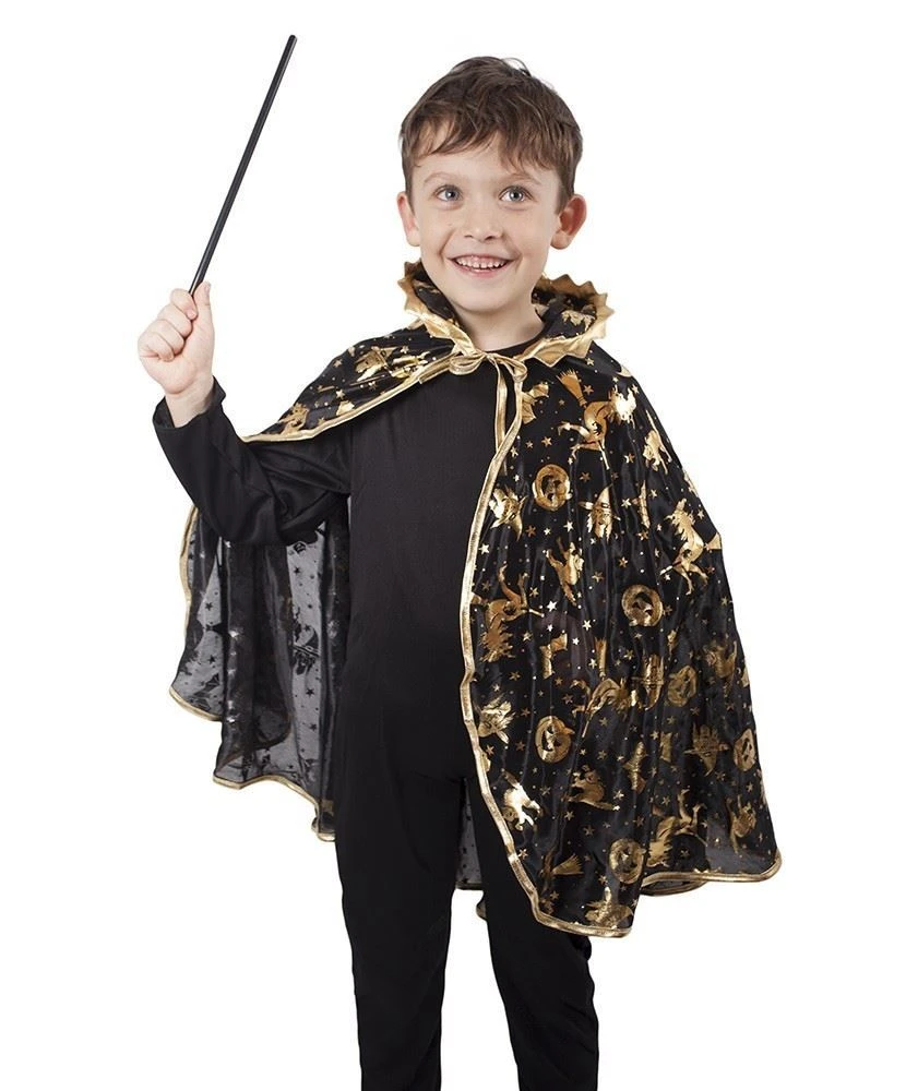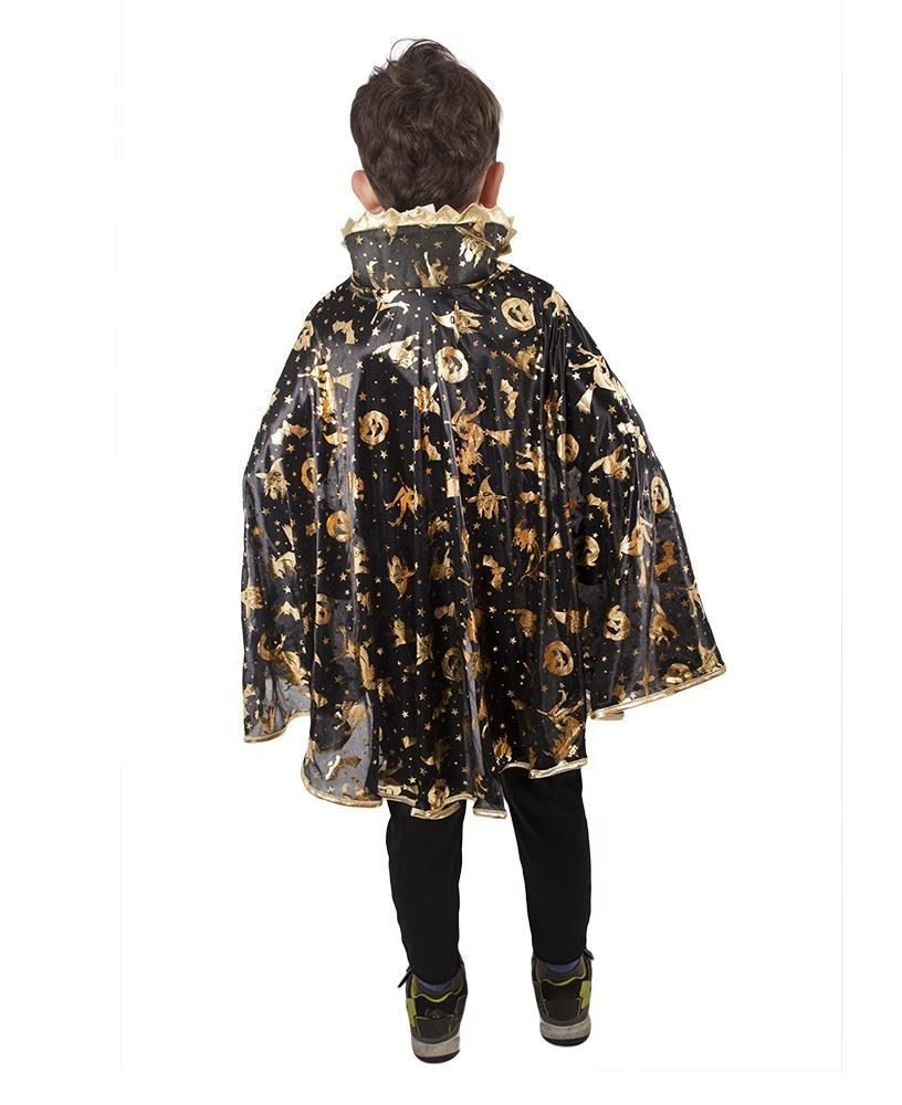 Černý plášť je dekorován halloweenskými motivy zlaté barvy. Senzace!