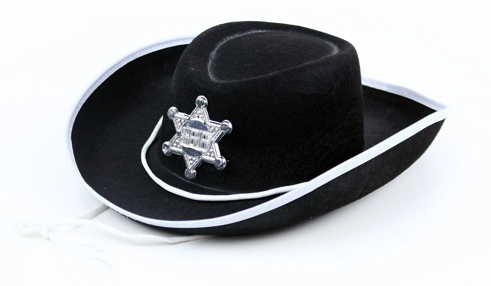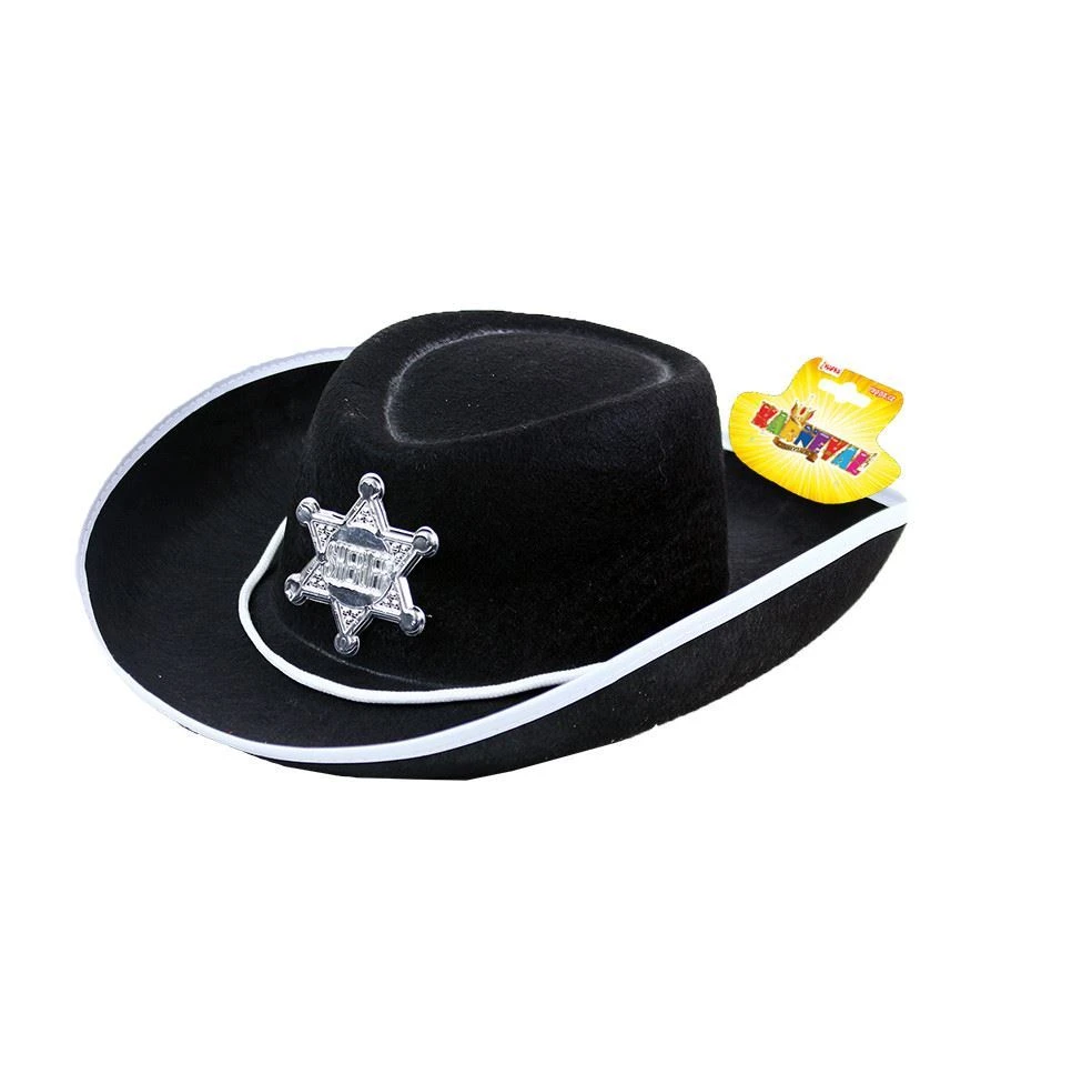 Senzační klobouk pro malé šerify! Tento černý elegán je zdoben opravdickým odznakem s nápisem SHERIFF a stříbrným lemováním. Staň se hvězdou karnevalového večírku díky tomuto nepřehlédnutelnému klobouku a ohrom tak všechny své kamarády! Vnitřní obvod 52 cm.