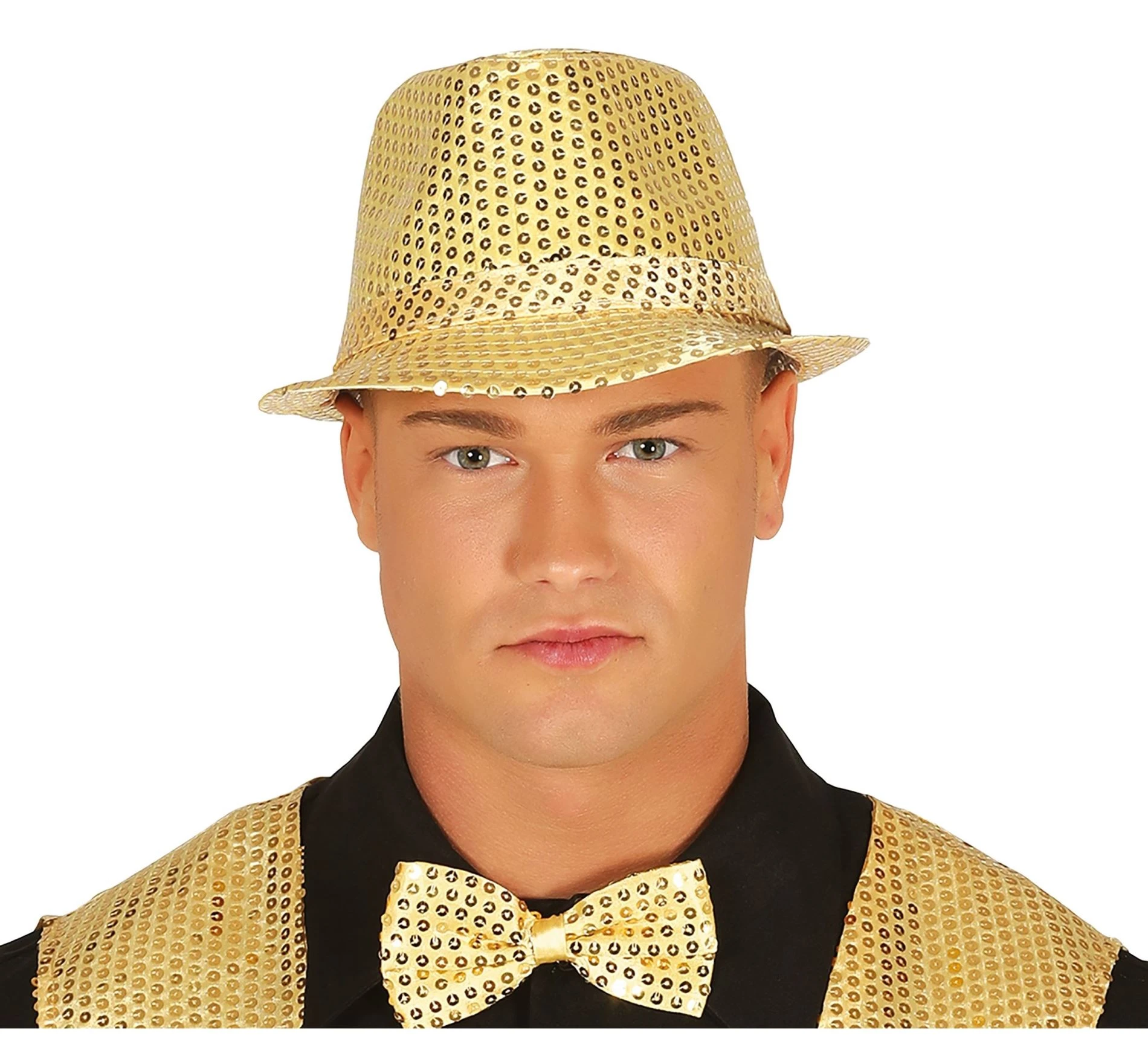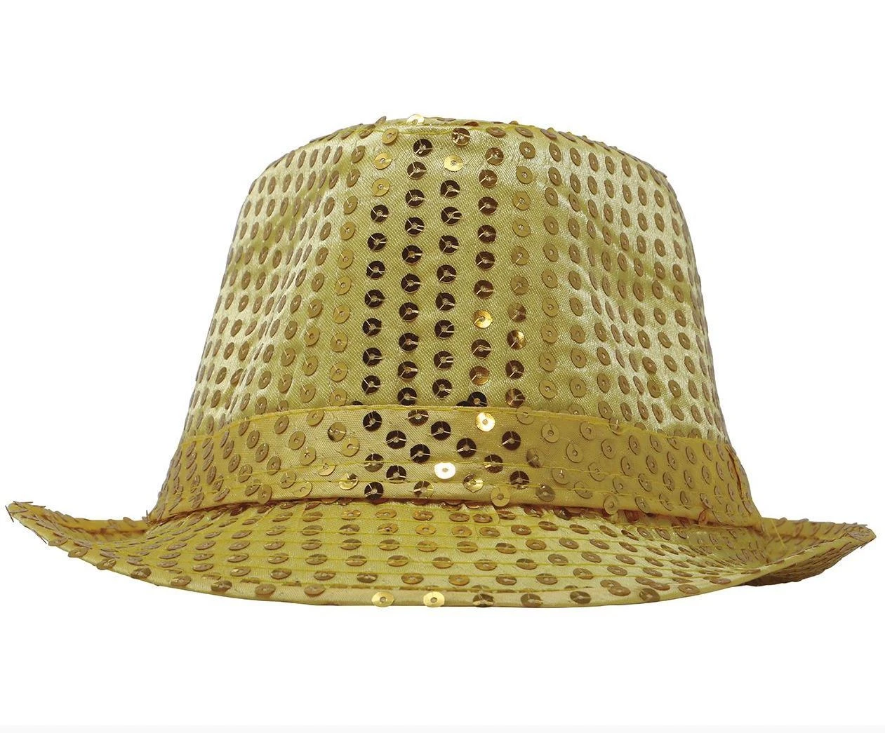 Tento parádní klobouk je zdoben zlatými flitry, takže je perfektním doplňkem na párty či karneval!