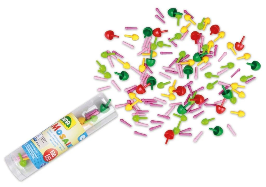 Mozaika určena nejmenším dětem. Díky velkým dírám a kolíčkům, nebudou mít malé ruce problém s umisťováním.