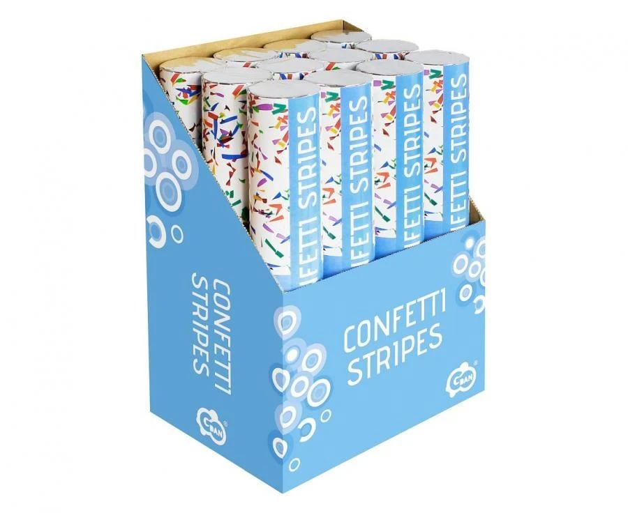 Bezpečnost: konfety lze použít ve venkovních i vnitřních prostorách. Bezpečná vzdálenost přihlížejících diváků od tuby konfet je 10 metrů