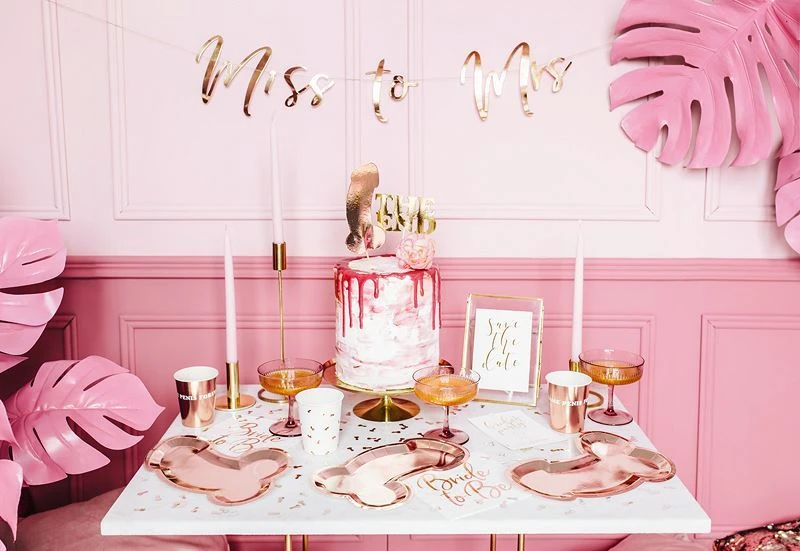 Růžovo zlatá čelenka s nápisem „Bride“ - nevěsta je nezbytným doplňkem k označení budoucí nevěsty na Vaši jedinečné rozlučce se svobodou. S tímto doplňkem všichni poznají, že to právě Vy se budete vdávat!