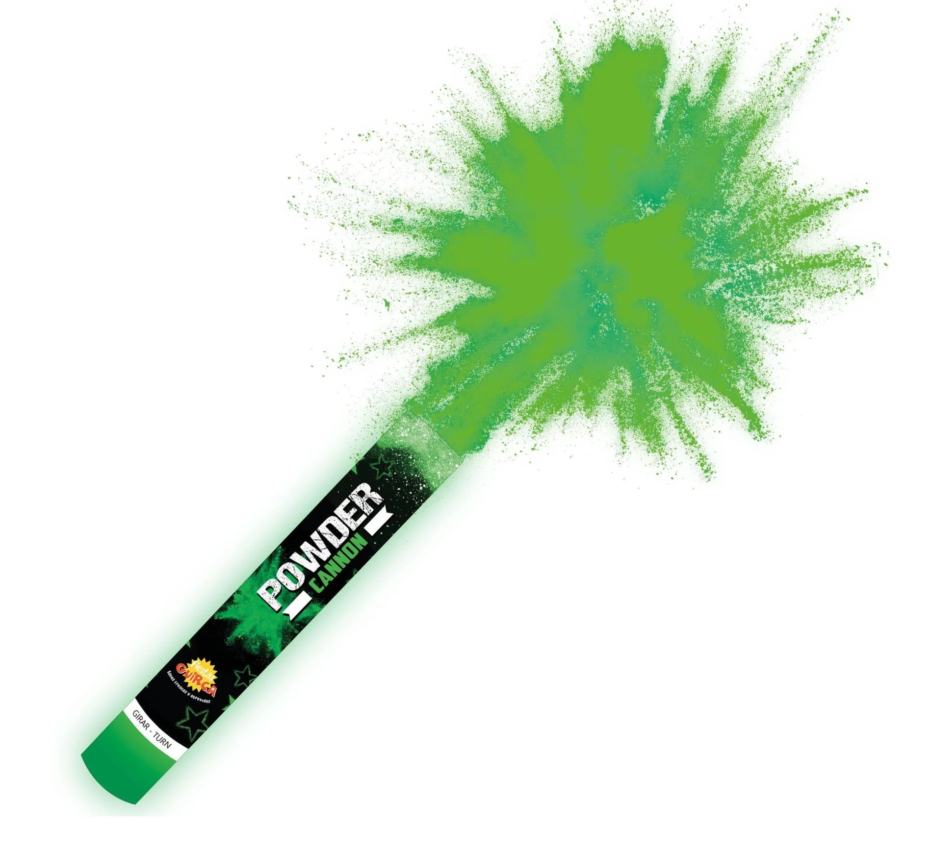 Po vystřelení vyletí zelený prášek do výšky 5 až 8 metrů a rozptýlí se do okolí.