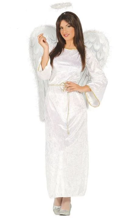 Tento kostým je velmi kvalitní. Skládá se z bílých šatů se zlatými detaily, svatozář a rozšířenými rukávy.