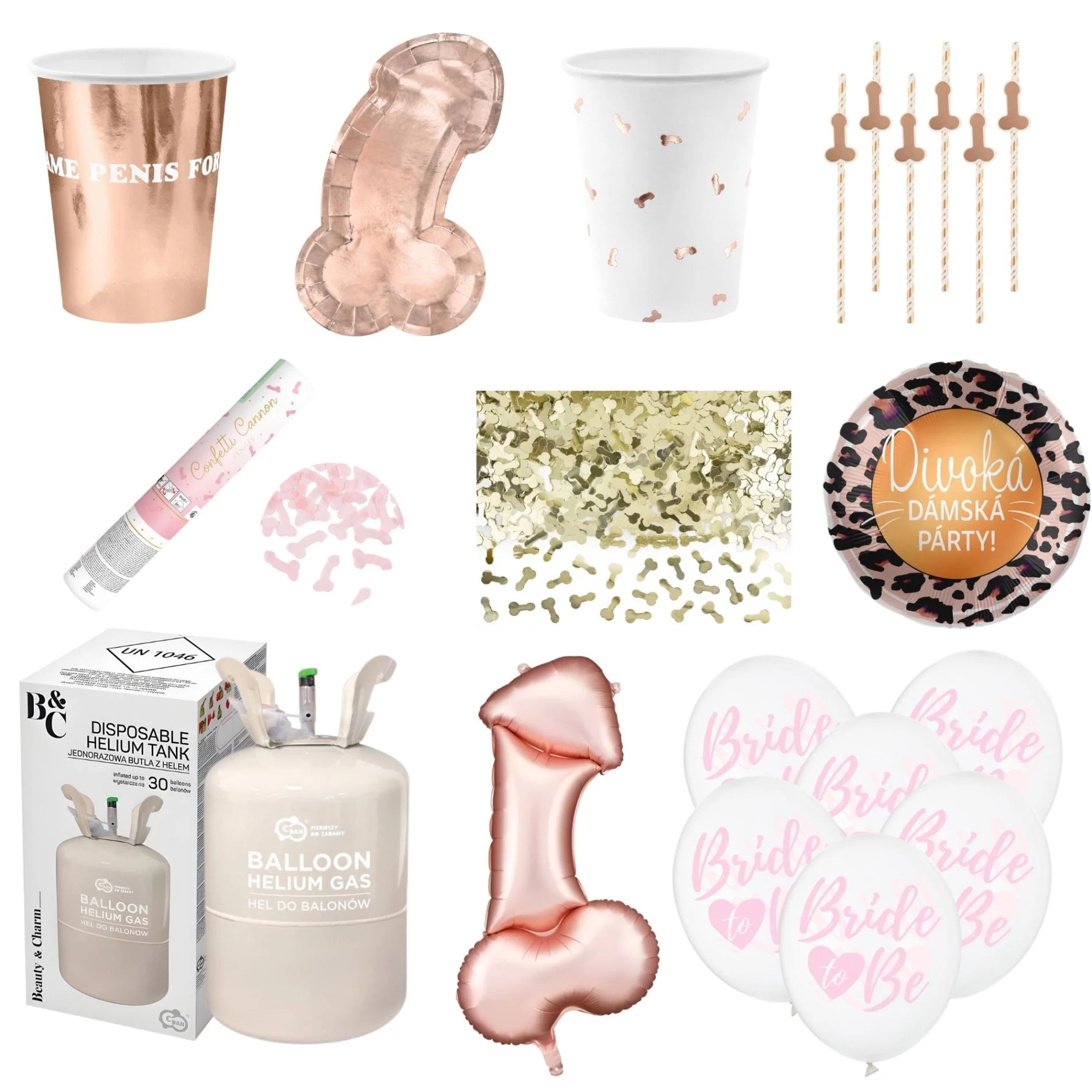 Dotaz k produktu - Mega párty sada na rozlučku se svobodou s balónky a heliem – motiv penisu - 53 ks