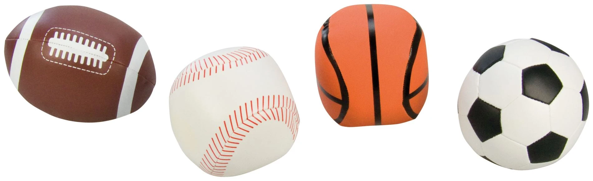 Měkký soft míček o velikosti 10 cm. 4 druhy sportu (fussball, basketball, rugby, baseball). Cena je za jeden míček.