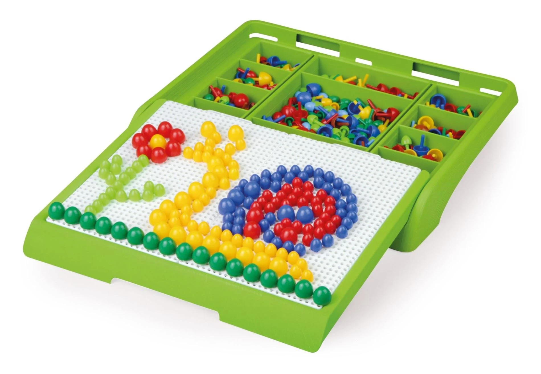 Přenosný úložný kufřík s vysouvacími panoramatickými deskami pro vkládání kolíčků. Kufřík slouží zároveň k uložení kolíčků. Kufřík obsahuje 300ks barevných kolíčků 10mm a 100ks barevných kolíčků 15mm.