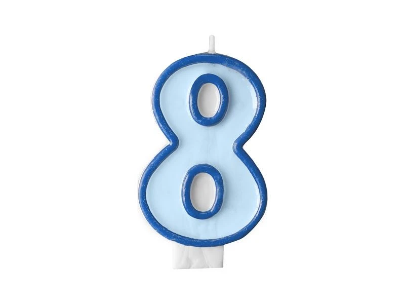 Modrá svíčka ve tvaru čísla 8 se bude svěle vyjímat na každém narozeninovém dortu.