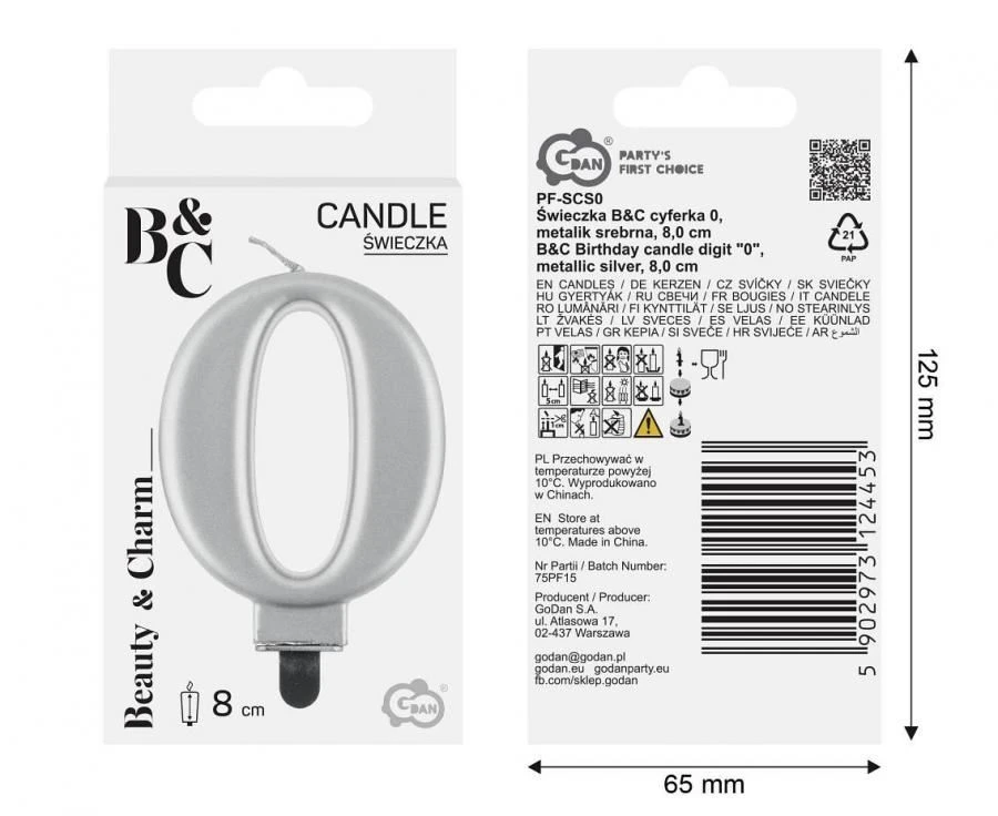 Číslo 0 je symbolem začátku i nekonečných možností. Je to základ každého kulatého jubilea, výročí nebo krásného kulatého věku. Elegantní narozeninová svíčka ve tvaru čísla 0 v metalické stříbrné barvě dodá dortu slavnostní šmrnc a udělá z něj ozdobu, na kterou se nezapomíná.