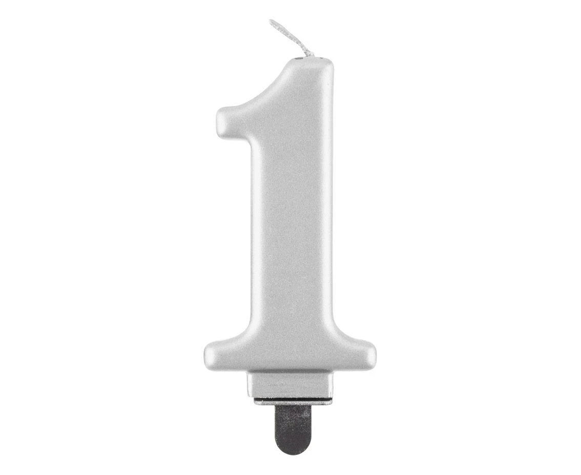 Elegantní stříbrná svíčka ve tvaru čísla 1, nesmí chybět na žádném narozeninovém dortu.