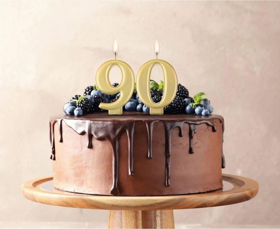 Elegantní zlatá svíčka ve tvaru čísla 2, nesmí chybět na žádném narozeninovém dortu.