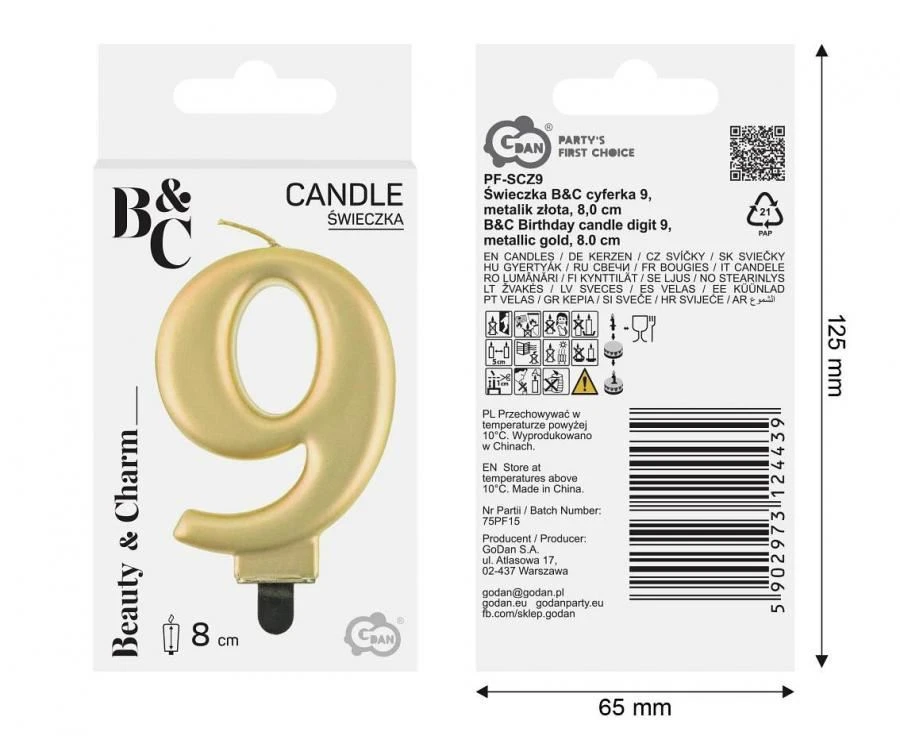 Dotaz k produktu - Narozeninová svíčka na dort - 9 - metalická zlatá - 8 cm