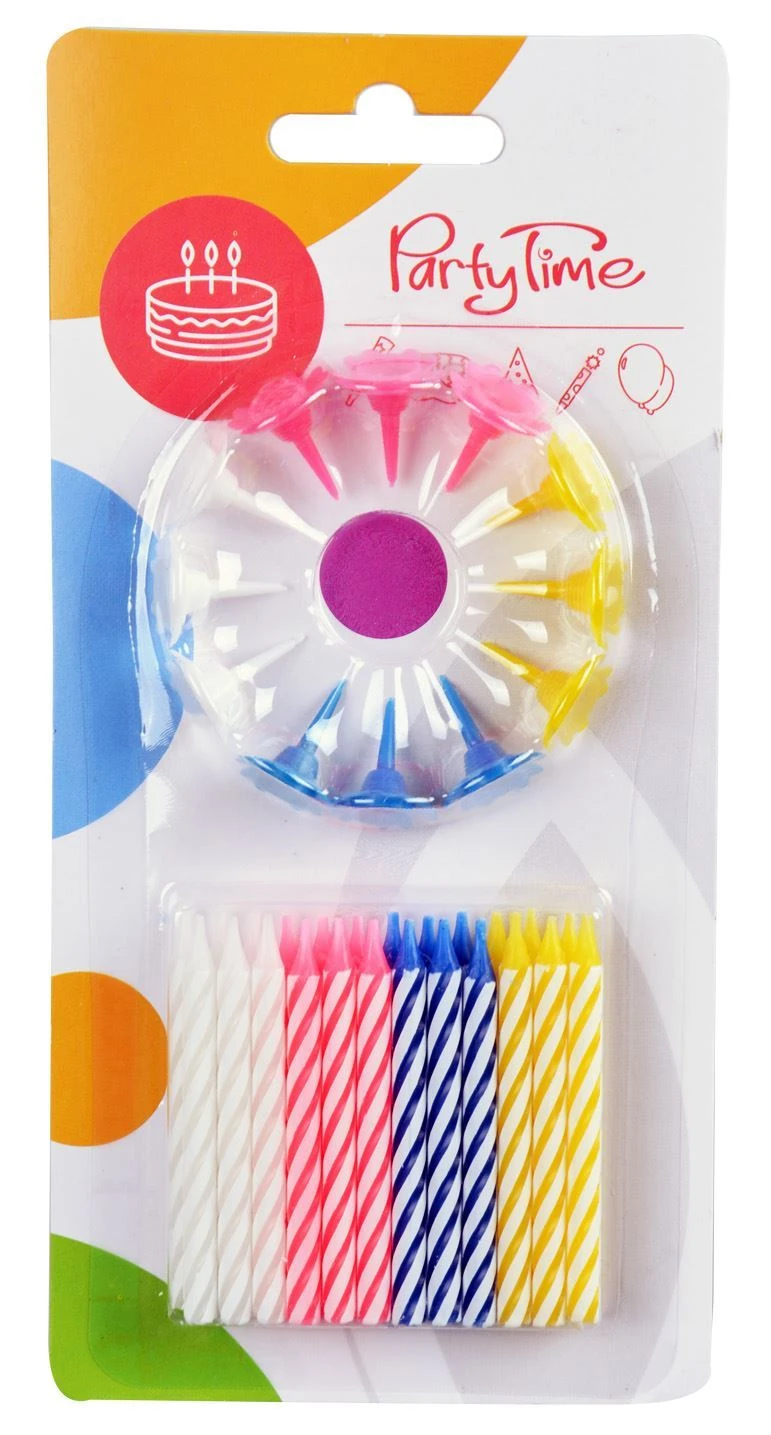 Narozeninové svíčky barevné - celkem 24 ks se stojánkem 12x.