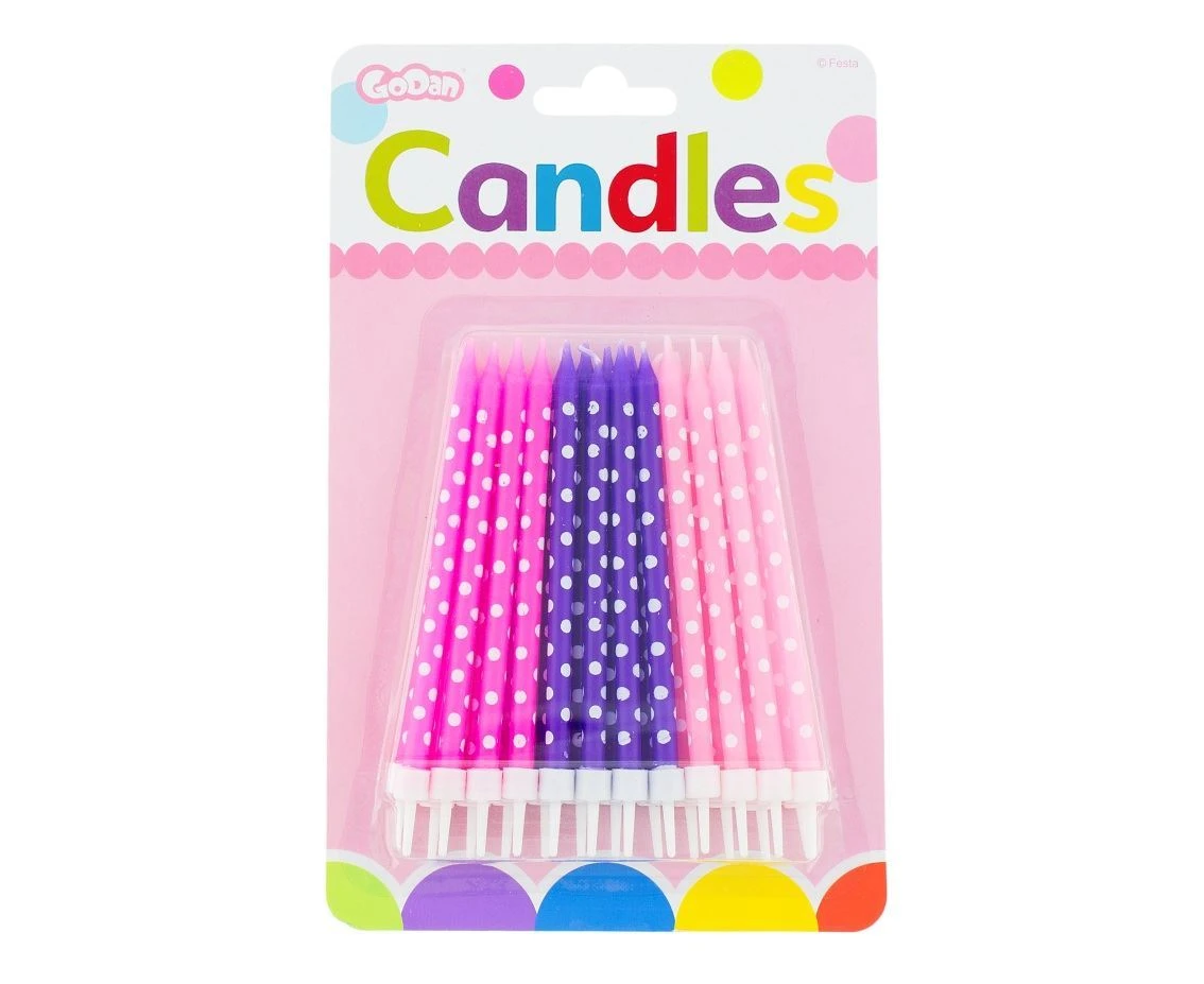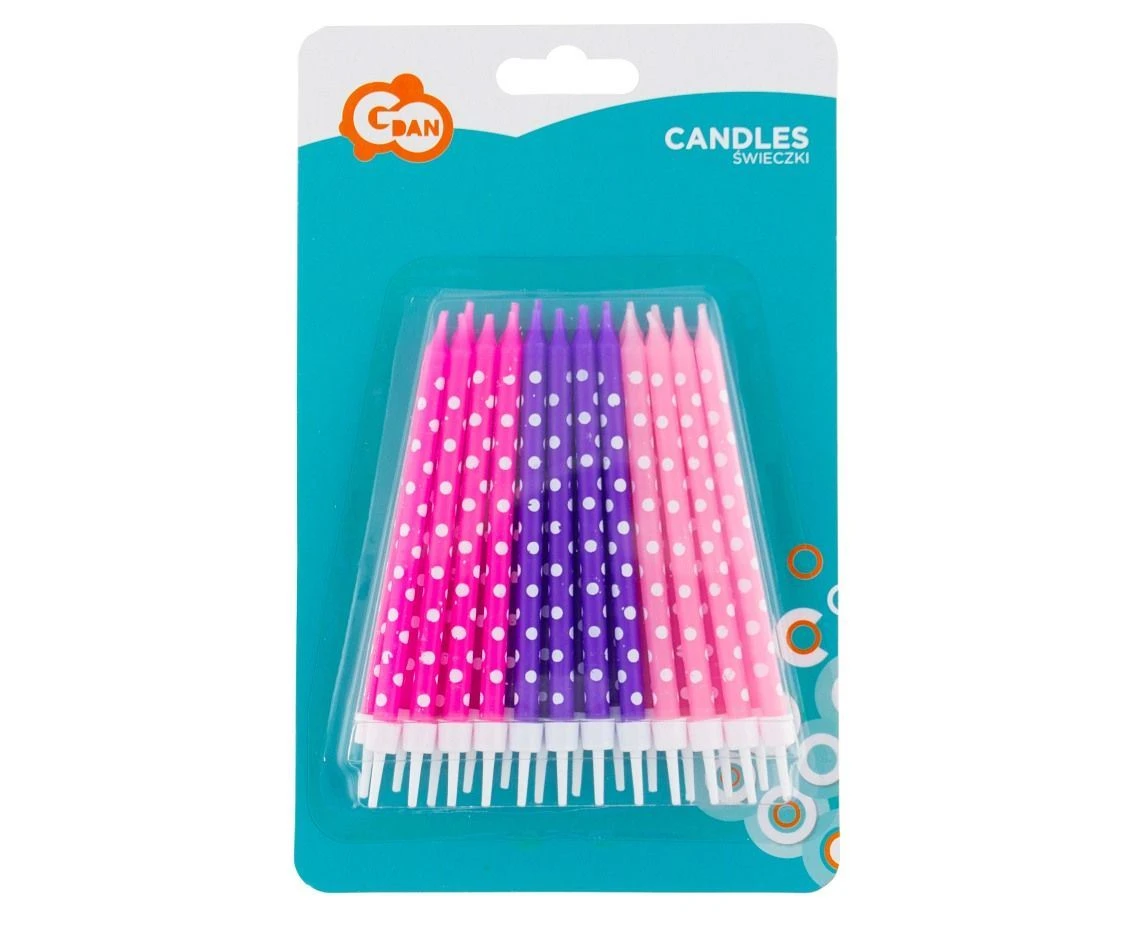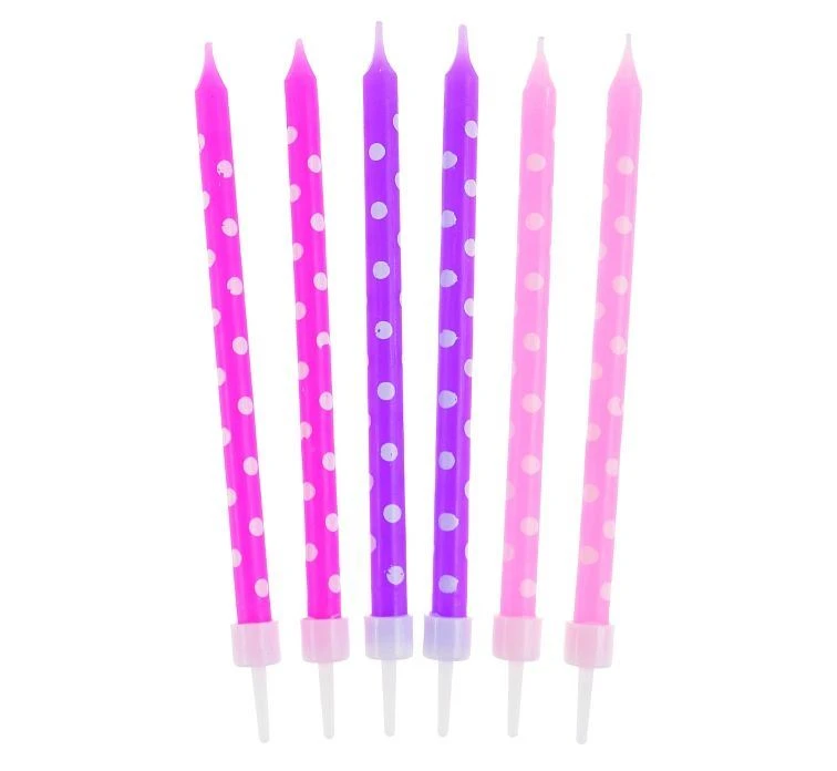 Dotaz k produktu - Narozeninové svíčky růžovo-fialové s puntíky - 24 ks - 11,5 cm