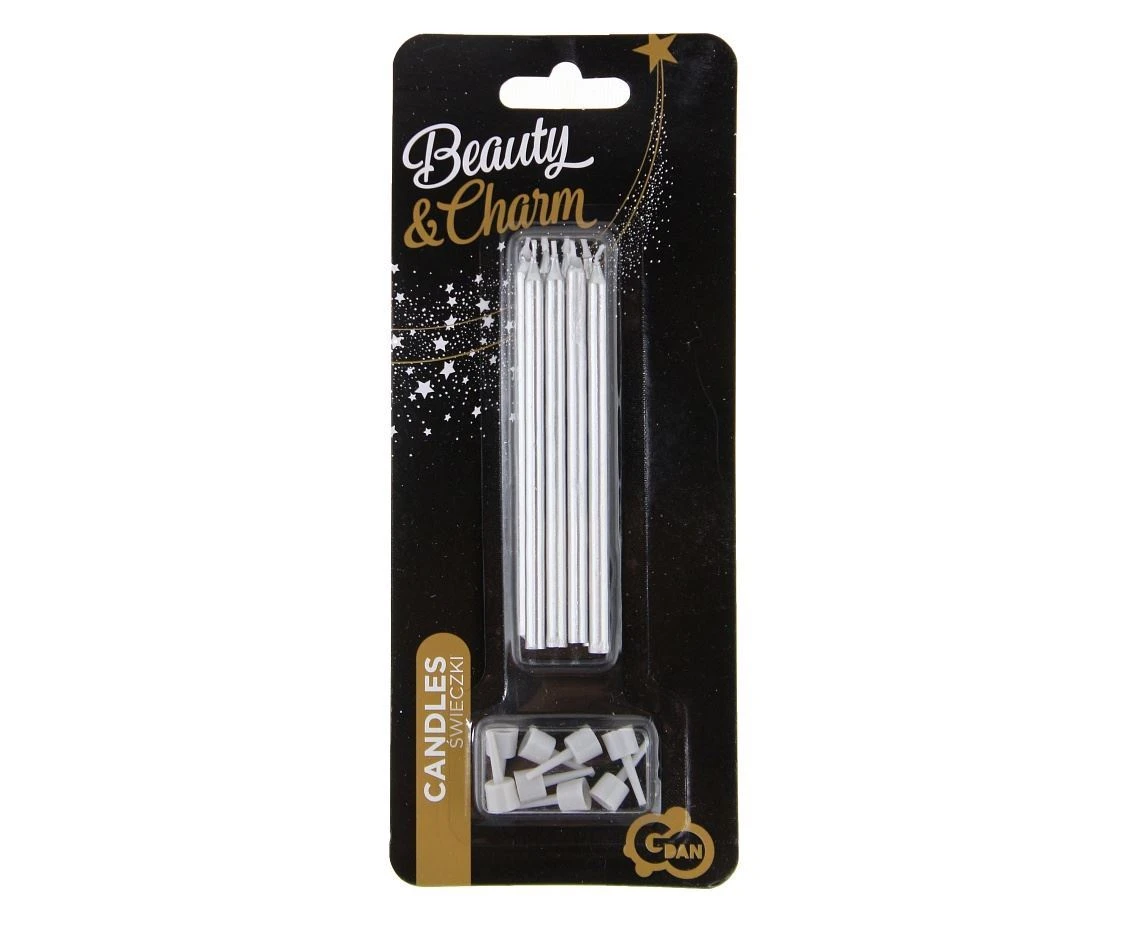 Narozeninové svíčky střibrné s podstavcemi délka - 10 cm - 8 ks