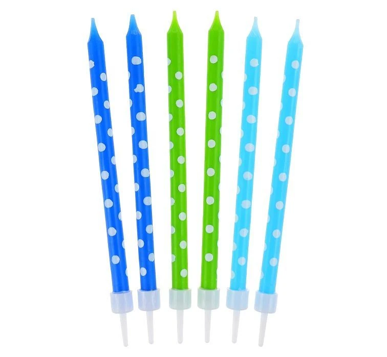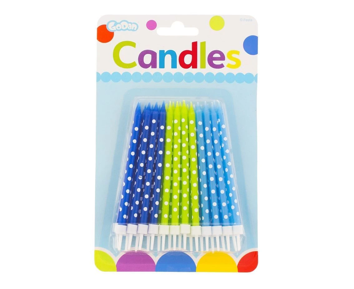 Dotaz k produktu - Narozeninové svíčky zeleno-modré s puntíky - 24 ks - 11,5 cm