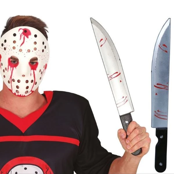 Krvavý nůž je skvělá dekorace na Halloween ke kostýmu postavy Jason - Bloody Murder z legendárního filmu Friday the 13th - Pátek 13.