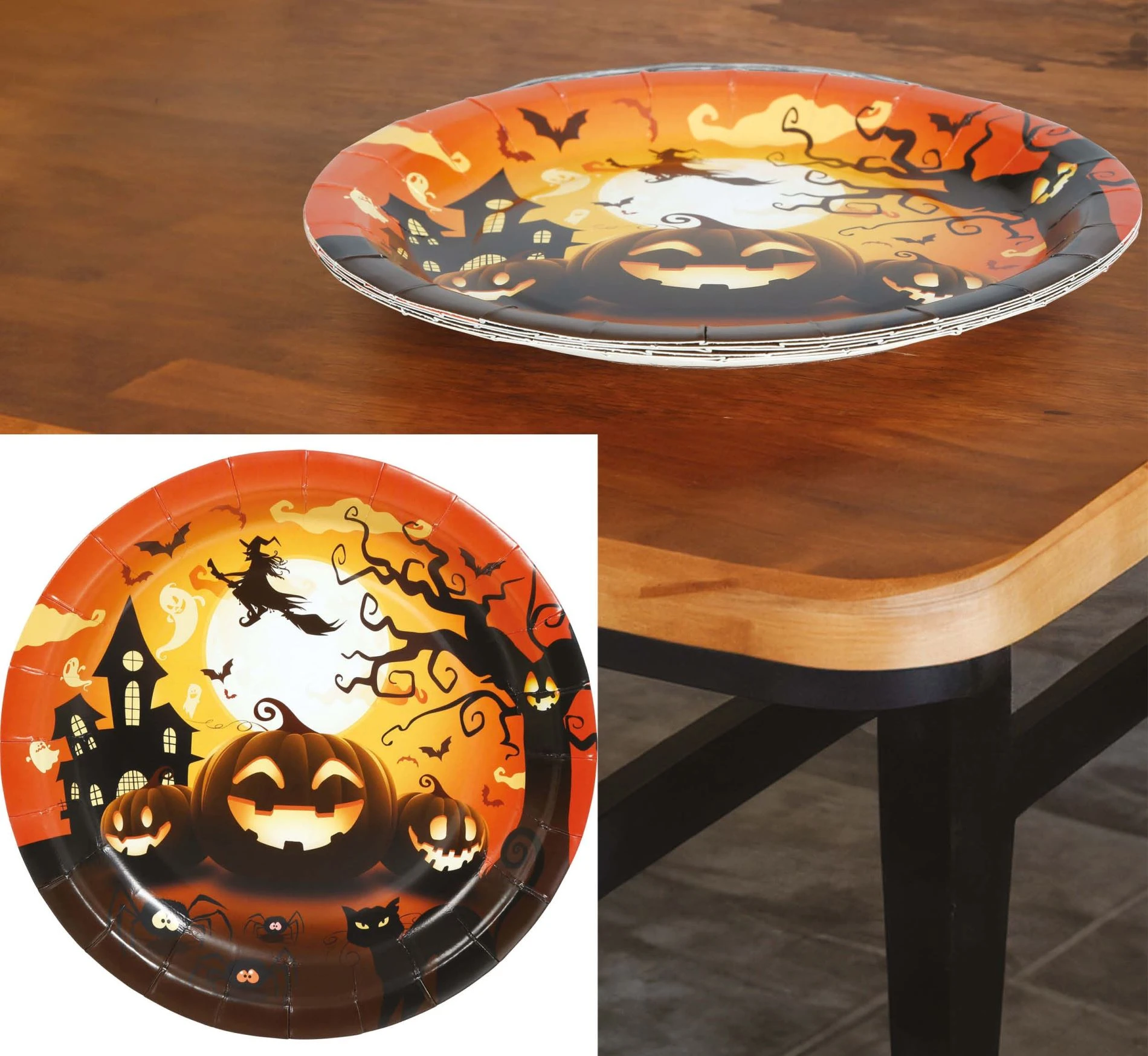 Na každém talíři vás přivítá veselá dýně, kouzelnice s kloboukem a pár netopýrů, kteří jen čekají, až se připojí k oslavě. Díky svému průměru 23 cm se hodí na sladkosti, chlebíčky i pořádný kus dýňového koláče.