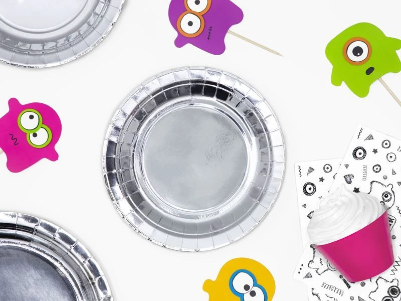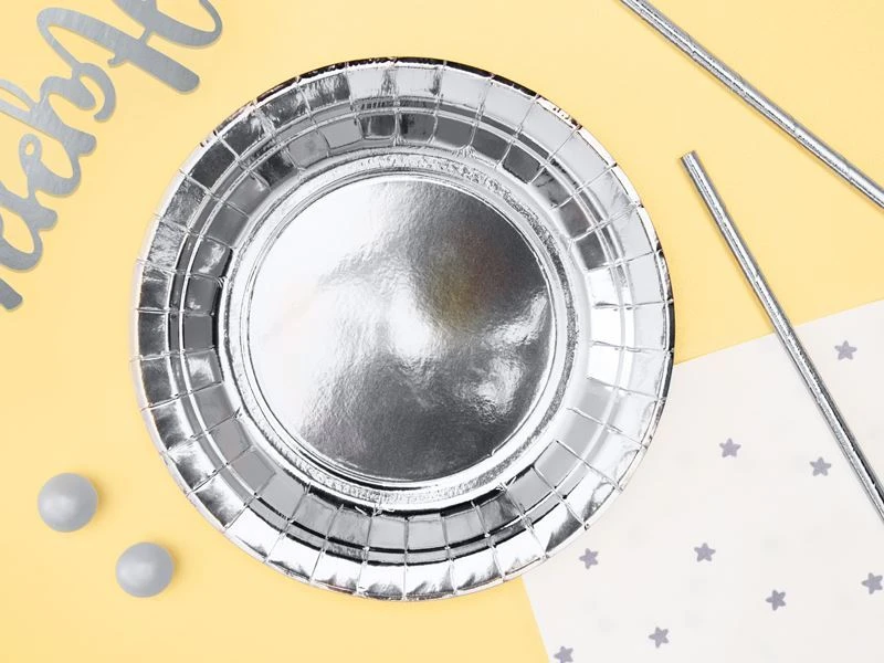 Papírové talíře stříbrné -18cm - 6 ks