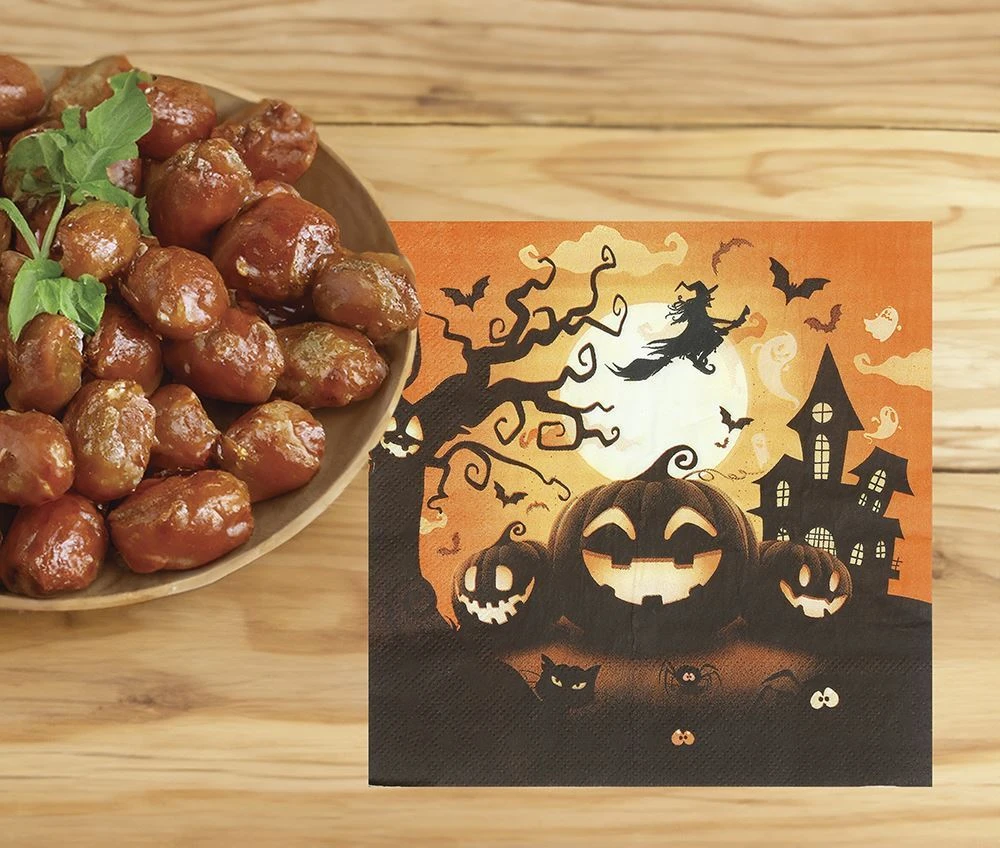 Žádná halloweenská oslava není úplná bez drobných detailů, které dotvářejí kouzelnou atmosféru. A přesně tohle dělají naše papírové ubrousky s motivem dýní, čarodějnic a létajících netopýrů – promění každý stůl ve strašidelně veselou hostinu. Každý ubrousek je připravený na to, aby zachytil drobné nehody, ale zároveň rozzářil stůl svým designem.