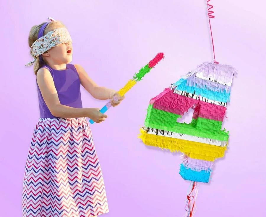 Piňata číslo " 4 " barevná - tahací - 50 x 35 x 7,5 cm