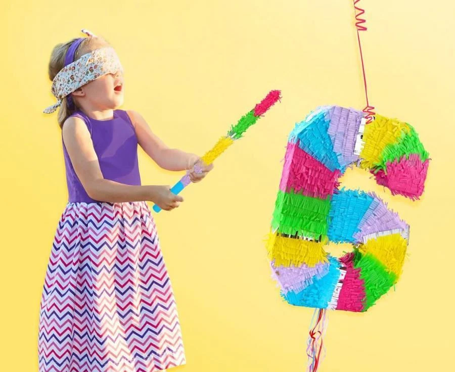 Piňata číslo " 6 " barevná - tahací - 50 x 35 x 7,5 cm