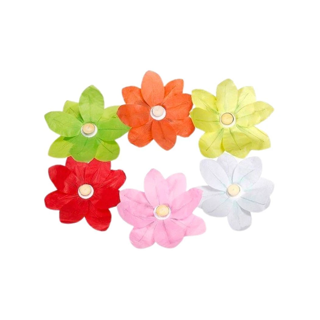 Popis: Okvětní lístky lampionu jsou vyrobeny z barevného poloprůhledného papíru, jsou vyztužené jemným drátkem, který slouží k tvarování květu. Na spodní části Plovoucího Lampionu je impregrovaná plovoucí podložka, která zabezpečuje vznášení lampiónu na hladině. Součástí balení je čajová svíčka. Délka hoření je minimálně 120 minut. Na hladině vydrží i několik dní.
