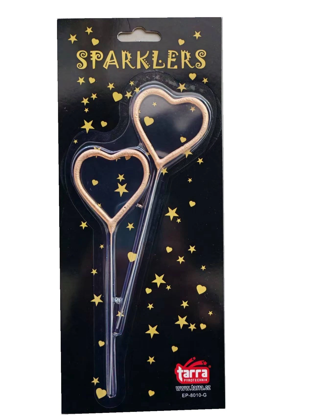 Prskavky ve tvaru srdce zlaté - srdíčka - 2 ks / 16,5cm - Valentýn - Svatba
