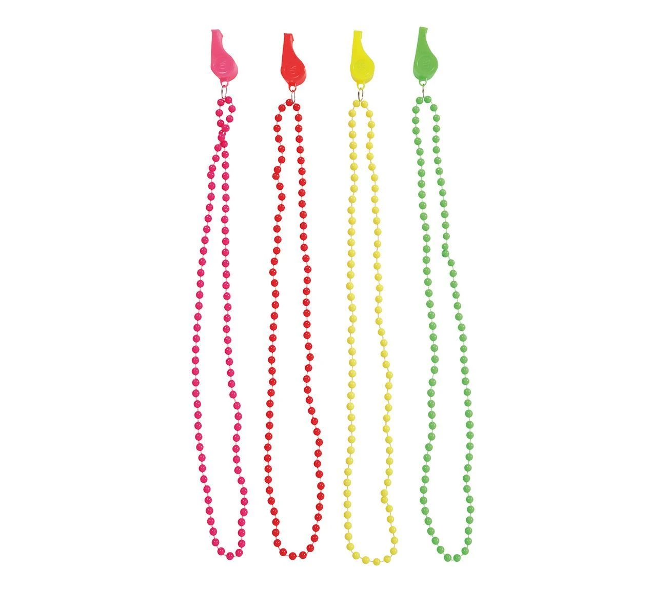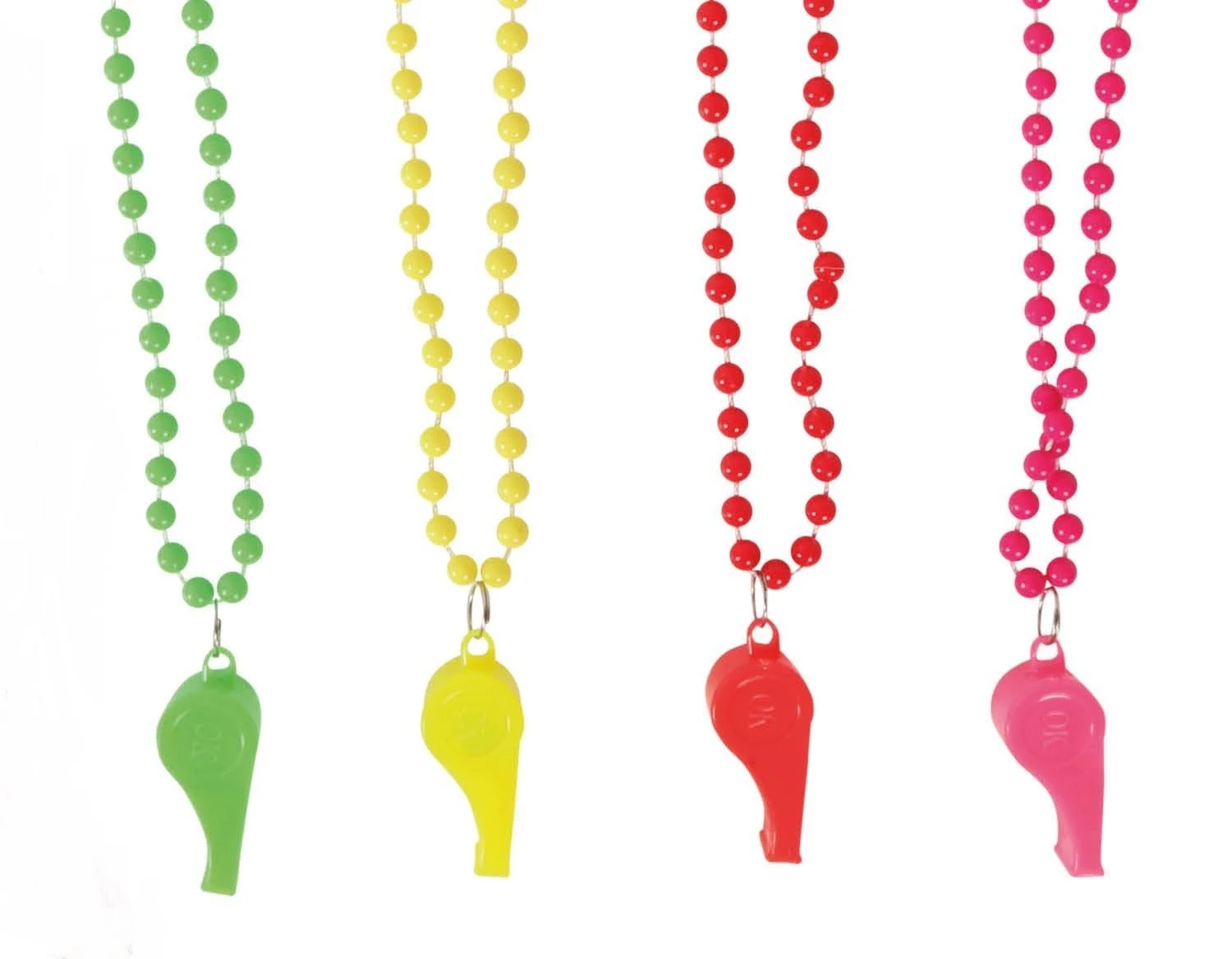 Pokud má být párty opravdu ve stylu 80. let, bez neonů to prostě nejde. Retro neonové náhrdelníky s píšťalkou jsou přesně ten doplněk, který dodá outfitu barvu, hravost a pořádnou dávku nadsázky. Navléknete, fouknete – a je jasné, že zábava právě začala.