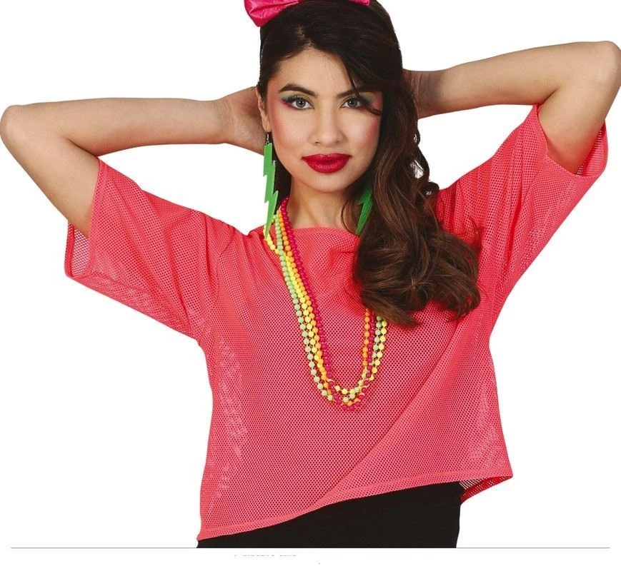 Oživte svůj vzhled odvážným stylem s tímto síťovaným růžovým retro tričkem,